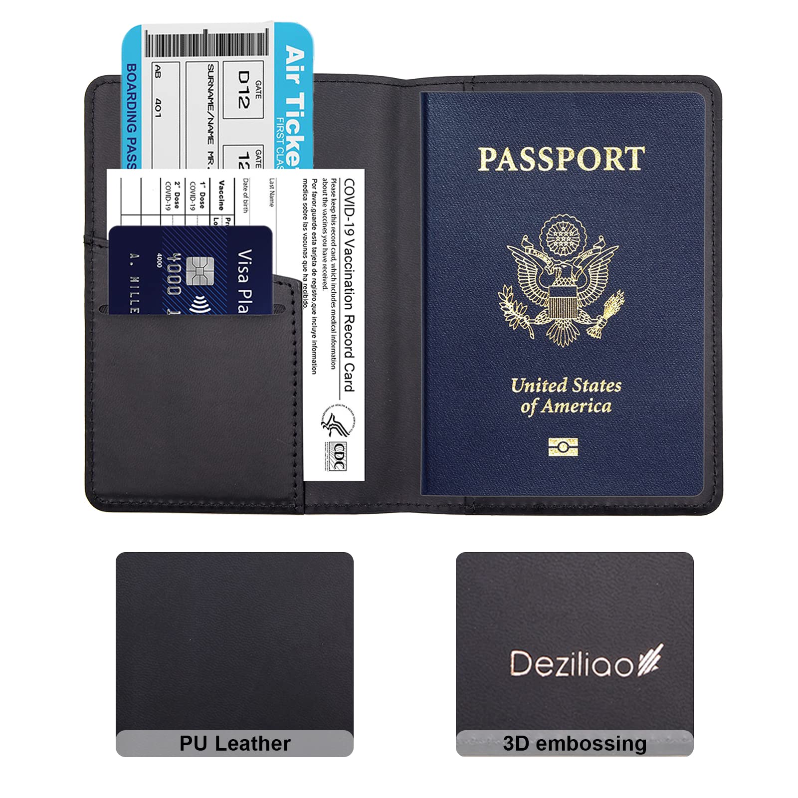 Deziliao Passport Holder,Passport Holder Card Slots, Passport and Vaccine Card Holder Combo, Cute Passport cover for Women and Men, with Waterproof Rfid Blocking, Passport Travel Wallet(Black)