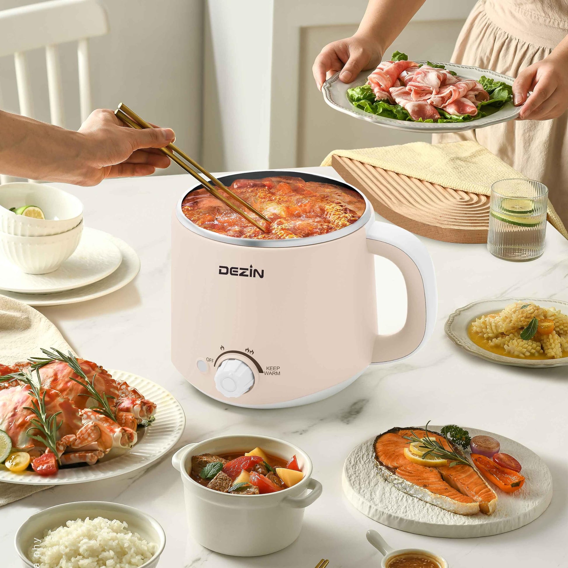 Dezin Electric Pot, 1.6L Ramen Cooker, Hot Pot Electric Stainless Steel, Multifunctional Cooker for Egg, Pasta, Soup, Porridge, Oatmeal with Temperature Control and Keep Warm Function