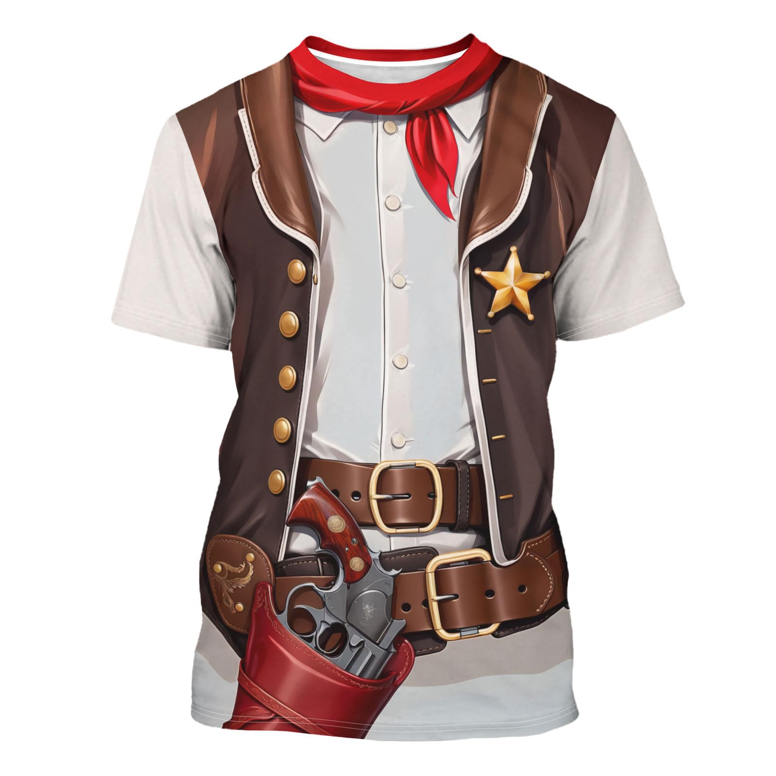 DFZ Cowboy Shirts for Men Funny Cosplay Costume Wester Crewneck Short Sleeve Casual Top Unisex Brown
