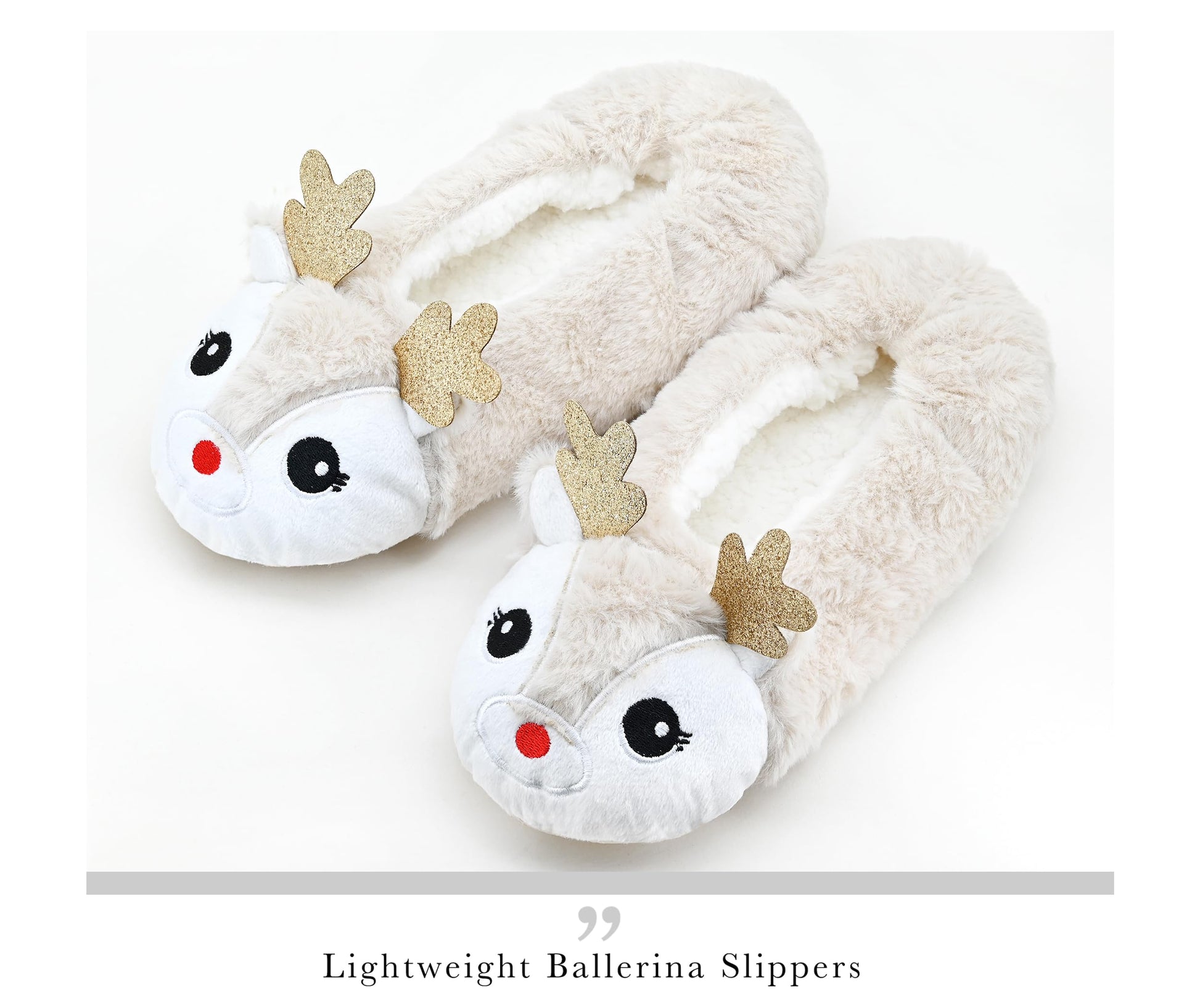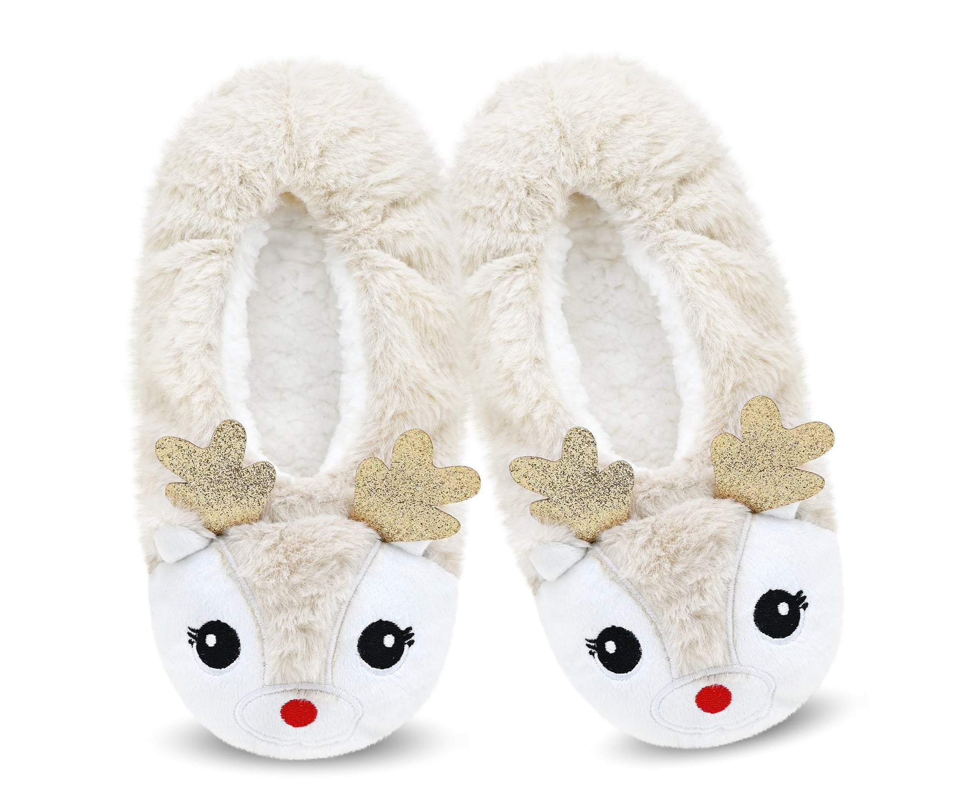 DICUIRD Womens Animal Soft Sole Slipper Socks with Grippers-Fuzzy House Slippers(Deer, 8-10)