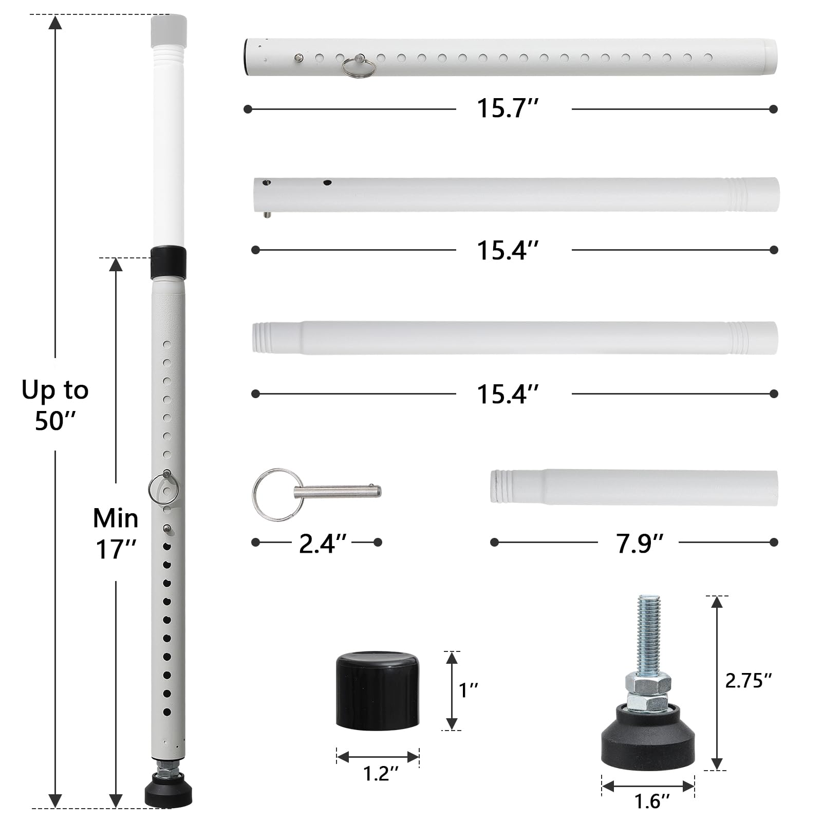 DIIG Sliding Door Security Bar,17.7-50.5inch Adjustable Locking Window Safety Bar with Rubber Tips,Diameter 1inch Window Security Bar for Home Apartment Travel (White)