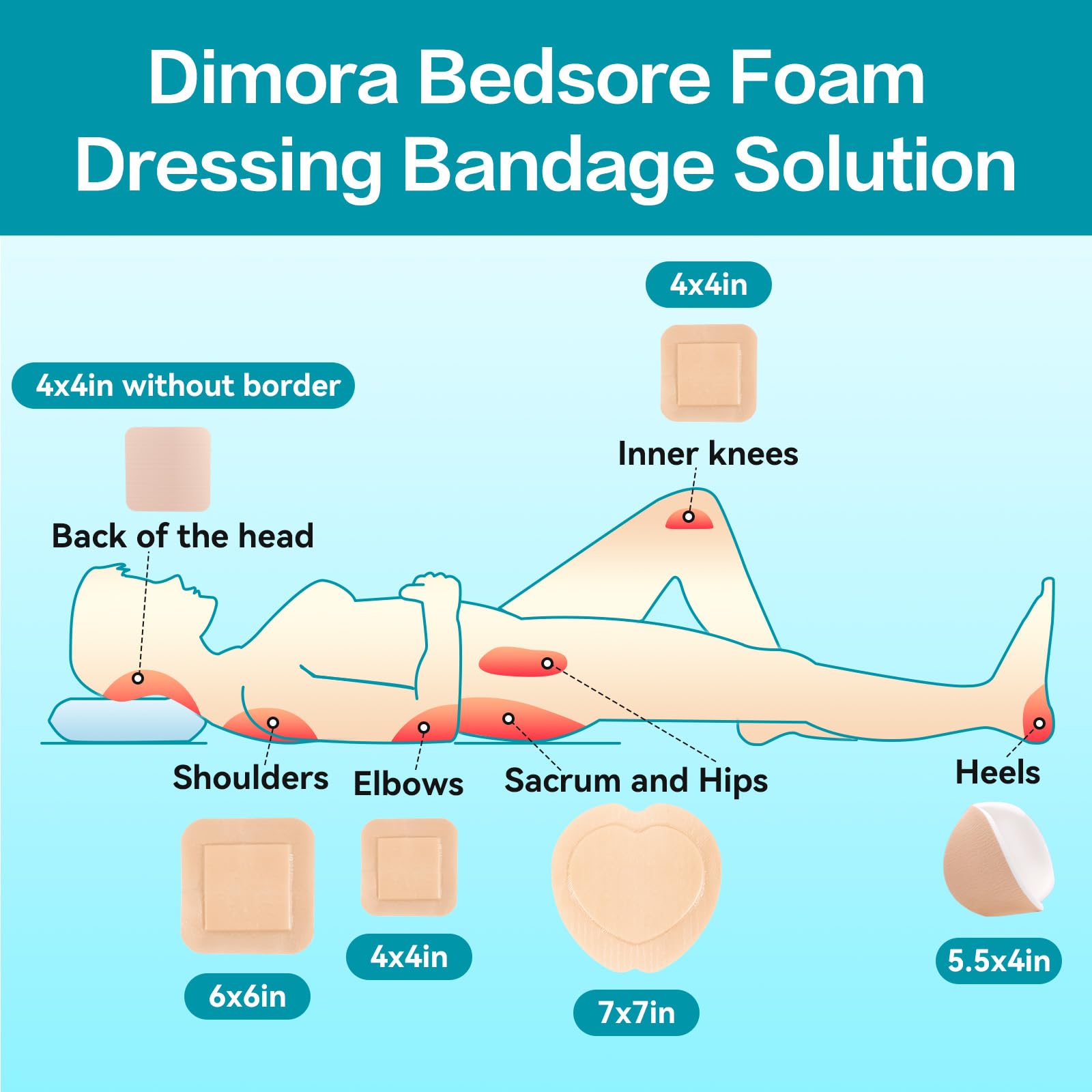 Dimora Wound Dressing Sacrum Foam Bandages Silicone Adhesive Border 7.08"x7.08" Waterproof Sacral Pads Absorbent Breathable Bed Sore Pressure Dressing