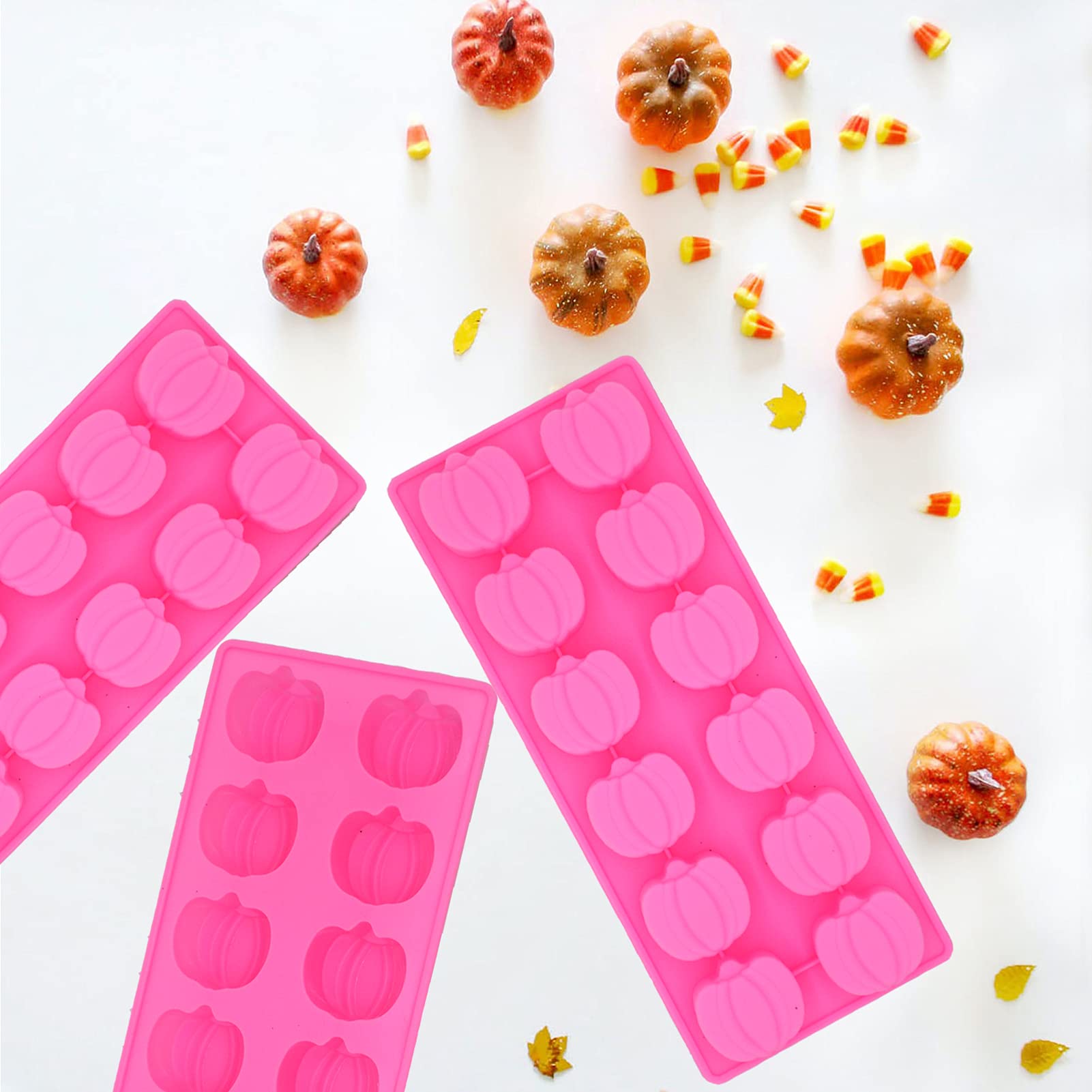 • 🎃What You Get: You will receive 3 Pcs mini Pumpkin molds silicone in this package. Halloween molds can be used to make chocolate, candy, cake, jello, candle, ice cube, cookies and more.