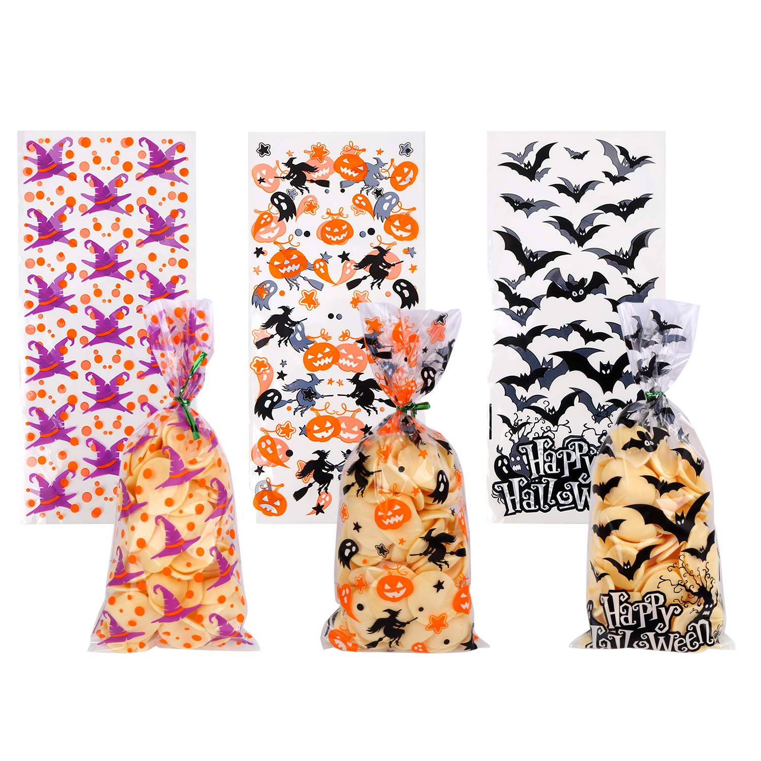 • Package:150 pcs Halloween cello candy bags in 3 style,Bats Pumpkin and Witch,each style 50 pcs. 300 Pcs 4.7 inch Twist Ties