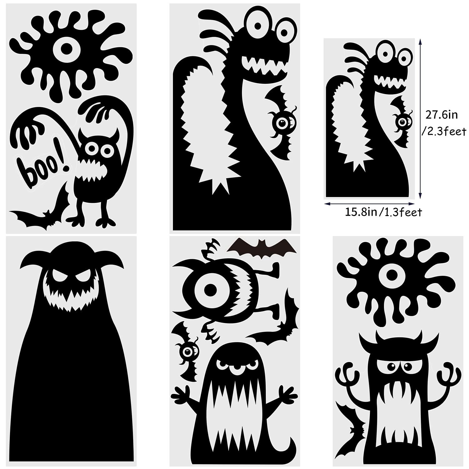 DIYASY Halloween Large Window Decoration Clings,5 Monster Silhouette Window Stickers Decals for Halloween Indoor,Room and Kids Party Decor
