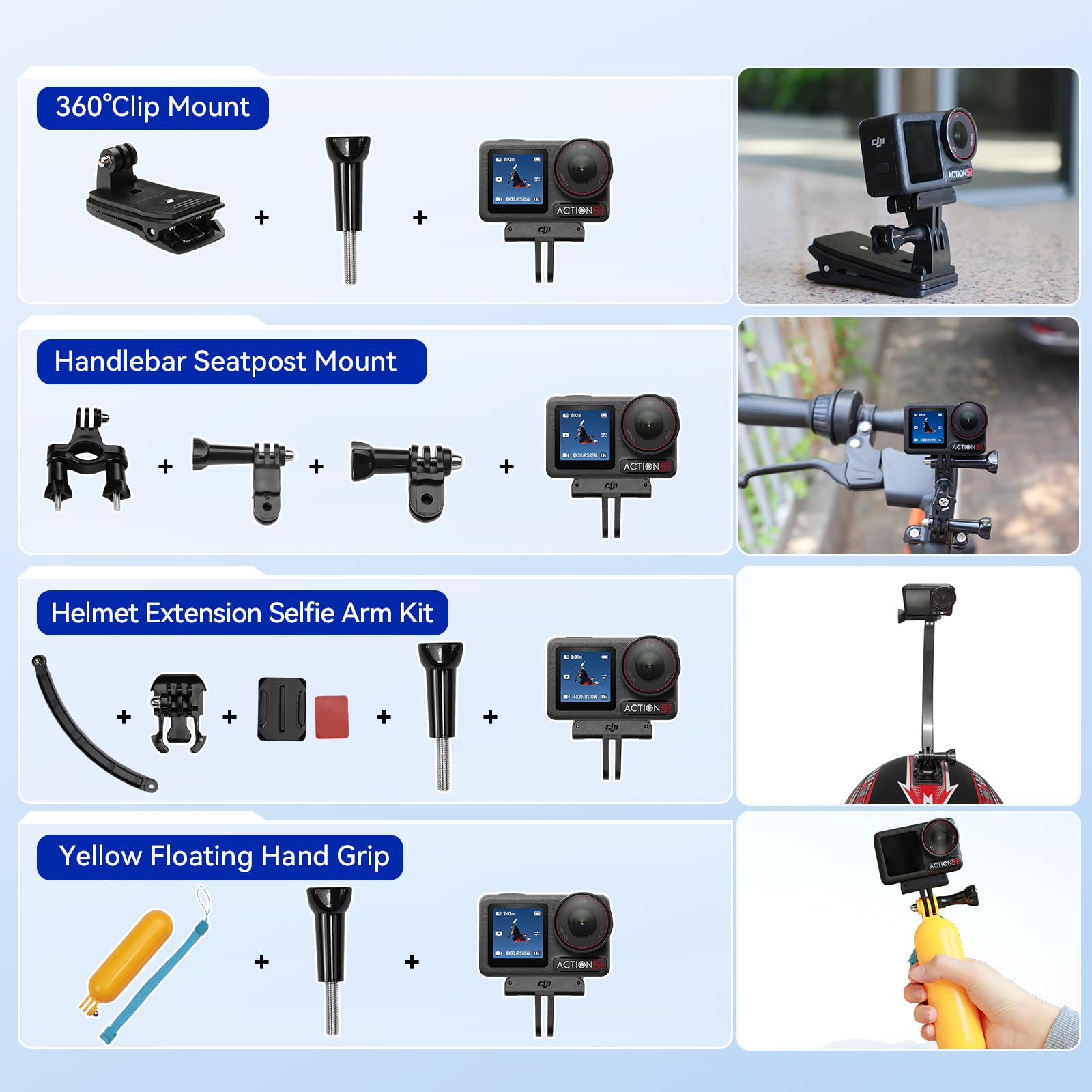 DJI Osmo Action 5 Pro Standard Combo,with 58 Piece Accessory Kit+ 64GB Card - Waterproof Action Camera with 1/1.3" Sensor, 4K/120fps Video, Action Camera 4K Ideal for Sports (Total 1 Battery)