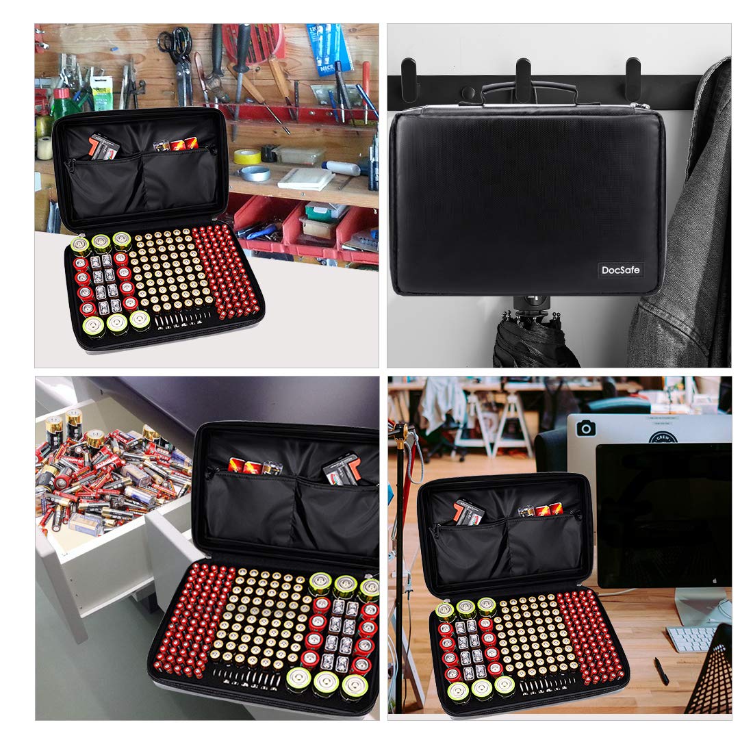 DocSafe Fireproof Battery Organizer Storage Box,Fireproof Waterproof Carrying Case Bag Holder,Safe Storage Holds 200+ Batteries AA AAA C D 9V, with Battery Tester BT-168 (Not Includes Batteries)