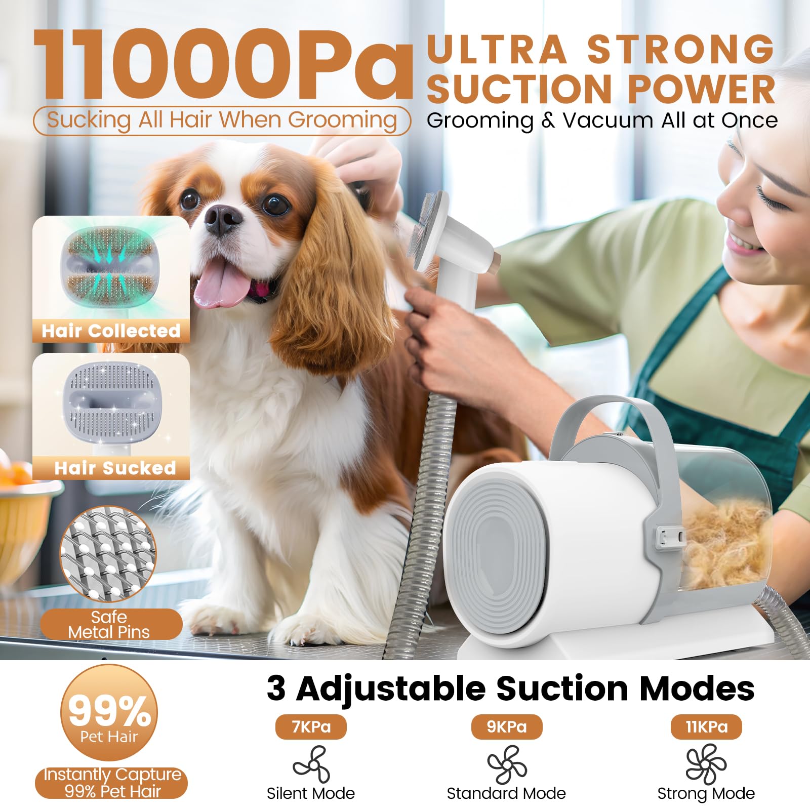 • Grooming & Vacuuming All At Once: Our dog grooming vacuum with vacuum suction, equipped with 11000pa powerful suction special heads and HEPA filter captures 99% of floating hairs and tiny particles when grooming pet hair without worrying about cleanup afterward, which is very helpful in maintaining indoor air quality. Say goodbye to hair-covered furniture and floors