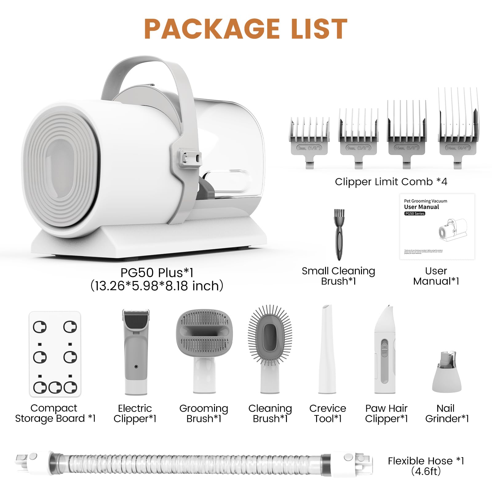 Dog Grooming Vacuum and Kit, Clipper Nail Trimmer Grinder, 2.5L Dust Cup 7 Grooming Tools 11000Pa Pet Vacuum for Shedding Grooming, Dog Hair Vacuum, Home Cleaning, PG50 Plus