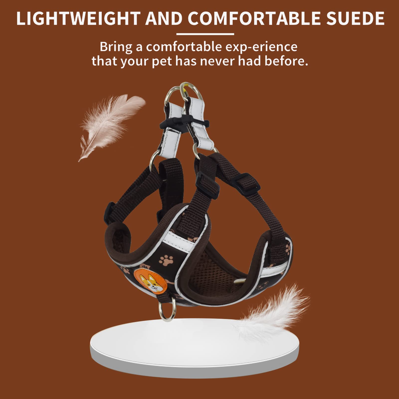 • 🐾【Super Comfortable & Breathable】: This small dog harness is perfect for any day's outing and training. The dog harness is made of high quality suede fabric, very soft and comfortable, breathable and durable, it will protect your pet's skin and won't feel stuffy.
