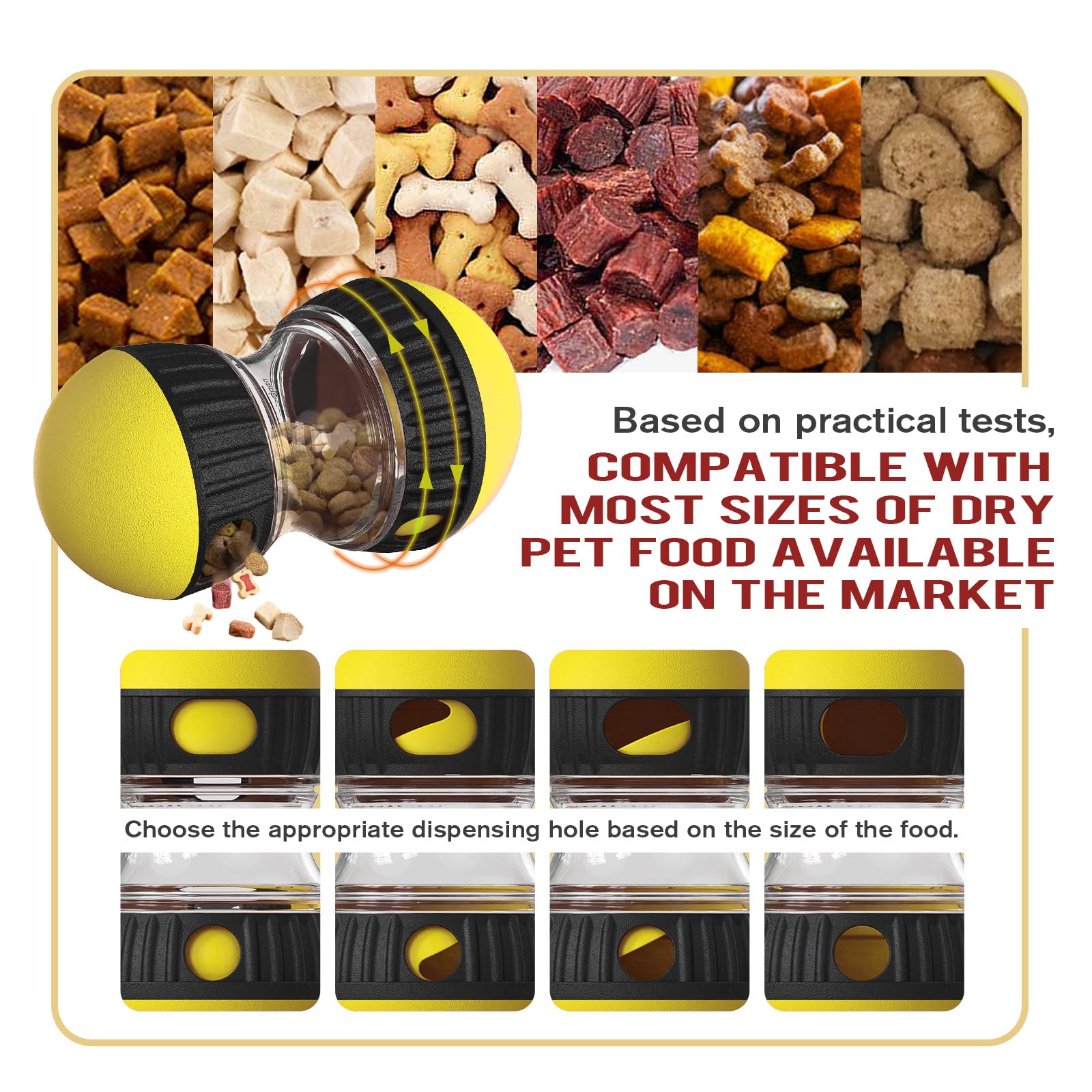 • Interactive Dog Toy: More suitable for boring dog toys at home, our interactive toy has different sized balls on both ends, when you push the toy, it will keep moving, during the movement, the food is dispensed from the adjustable food holes on both sides of the toy.