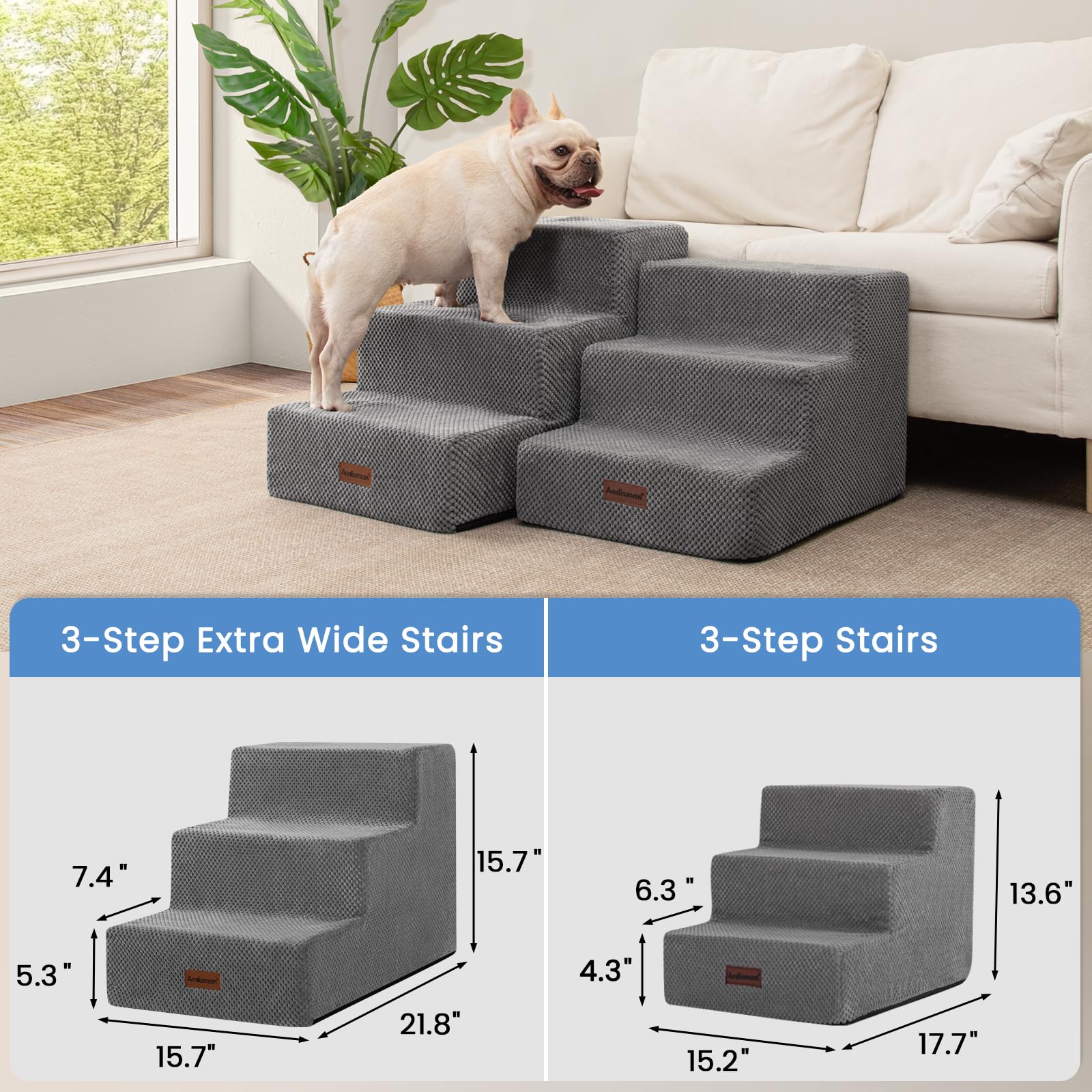 Dog Stairs for Small Dogs & Cats, 3-Step Non-Slip Pet Steps for Couch Sofa and Chair, Grey, 13.6" H