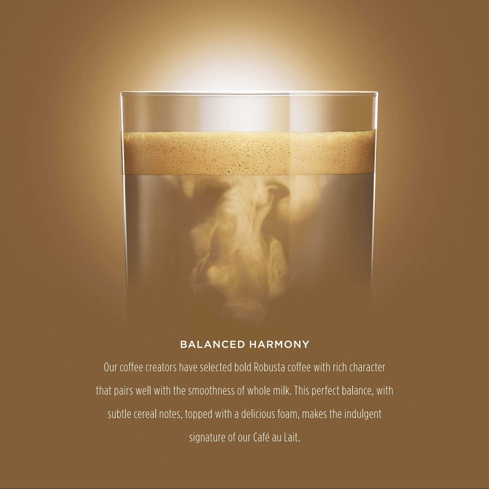 • Nescafe Dolce Gusto Café Au Lait is a rich dark roast coffee beautifully complemented by whole milk to reveal notes of sweet caramel with a smooth velvety texture