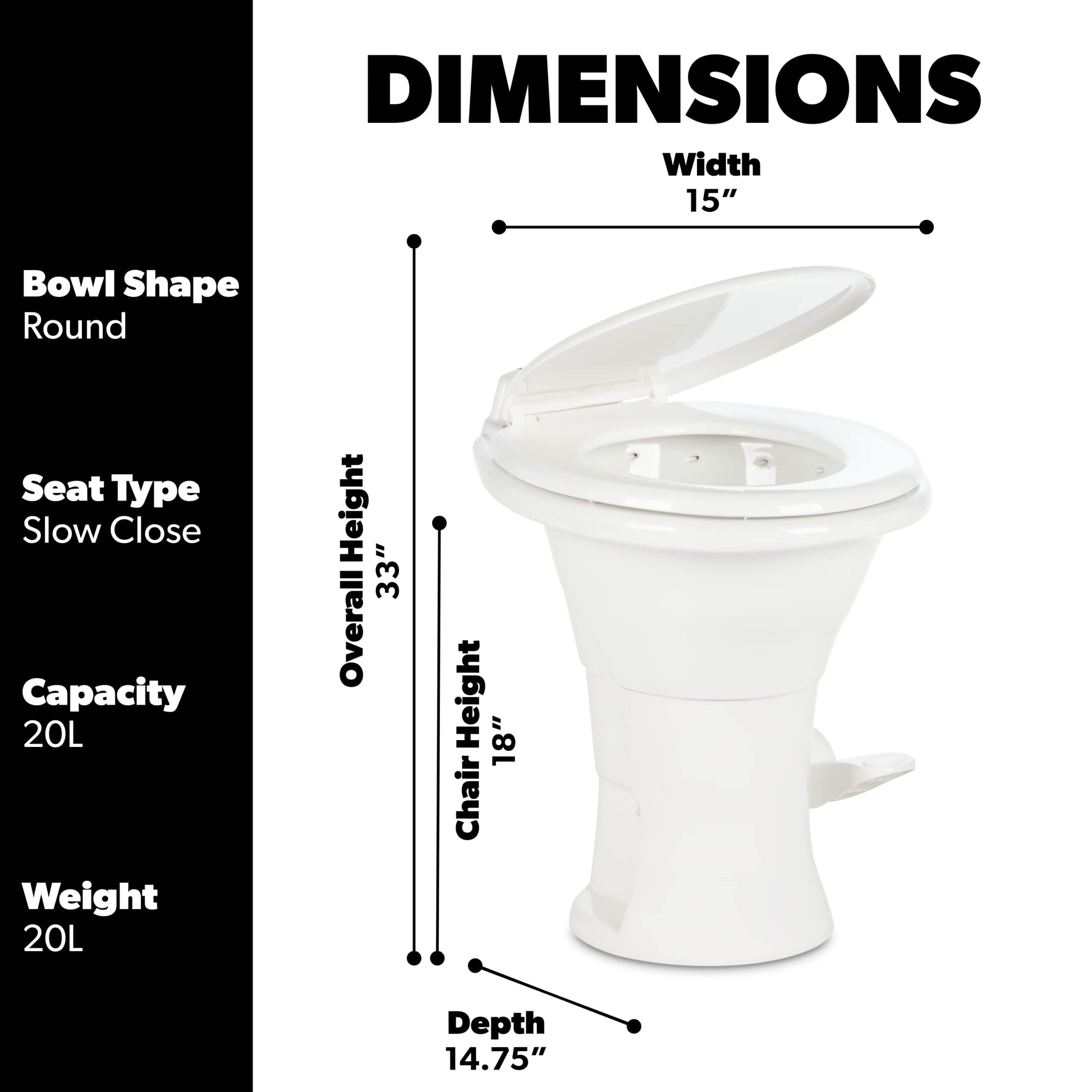 Dometic 310 Standard Toilet - White, Oblong Shape, Lightweight and Efficient with Pressure-Enhanced PowerFlush and Slow Close Seat Cover - Perfect for Modern RVs (302310081)