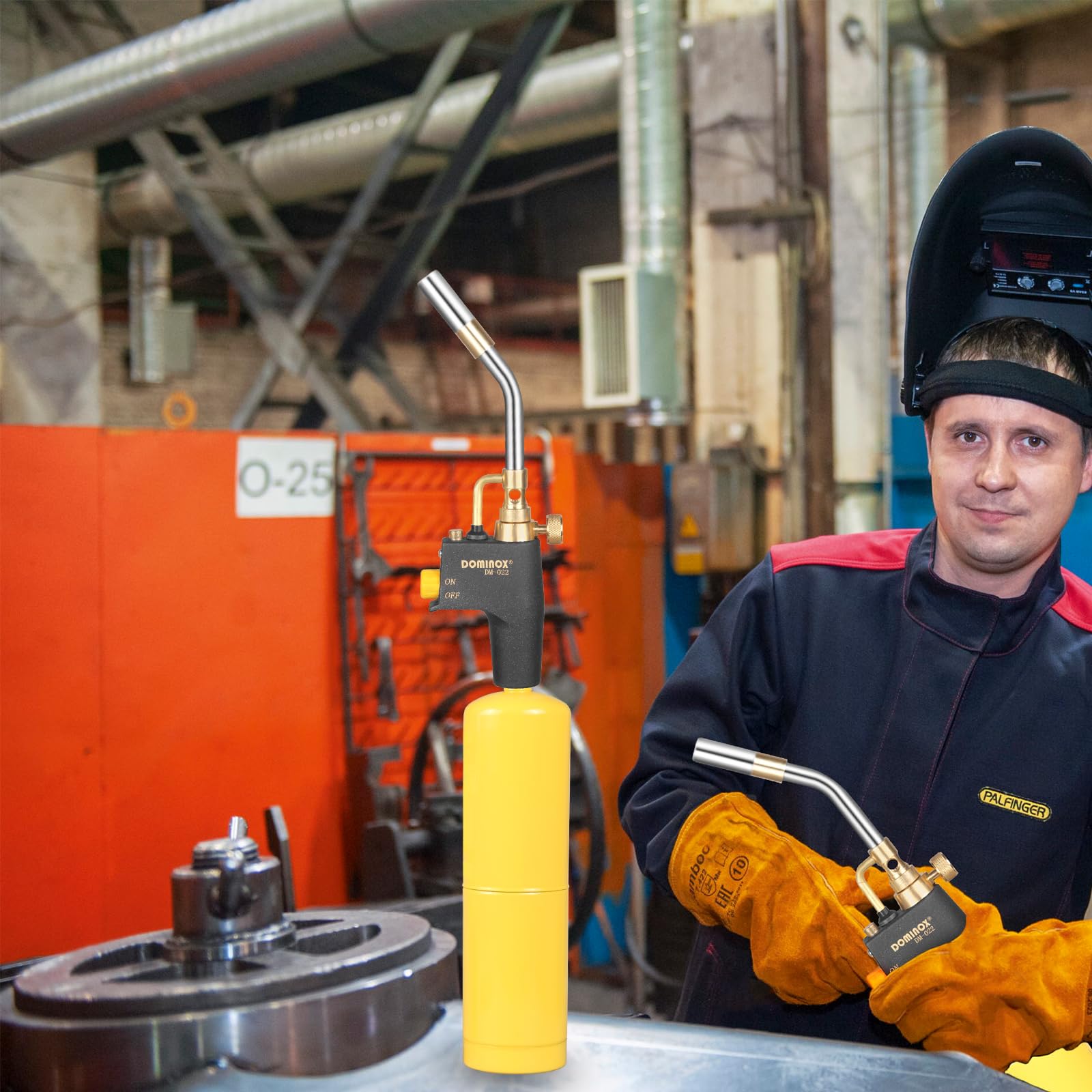 • 【Multipurpose Mapp Gas Torch】DOMINOX mapp gas torch kit can one click start flame, extinguish and lock flame, improving gas combustion economy. Map gas torch kit is easy to operate and has a wide range of applications, including industrial welding, brazing, and soldering. Propane torch can also be applied in daily life, including ignition, welding, brazing, soldering, heat shrinkage, barbecue, snow melting, and rust removal.
