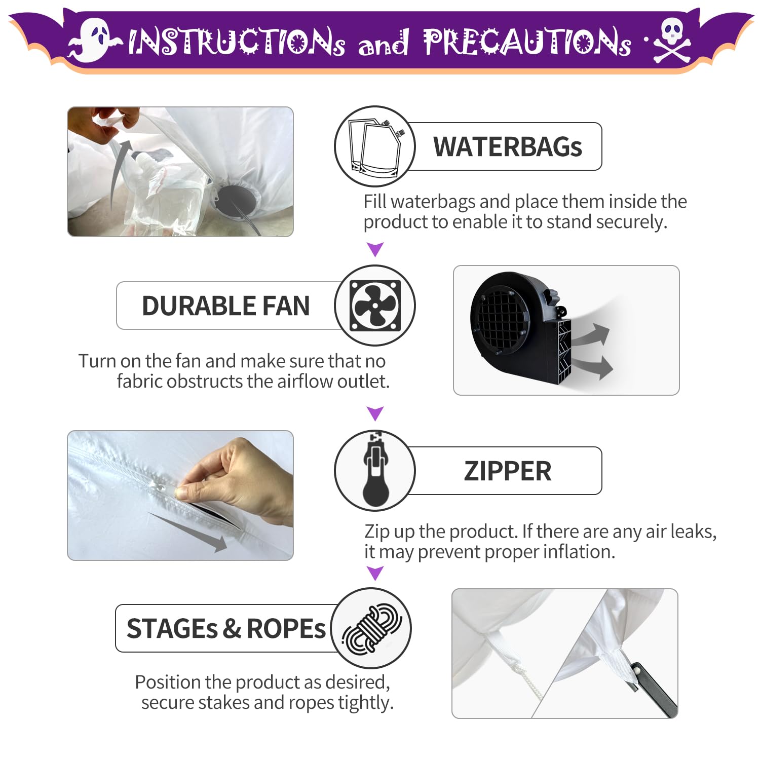 • 【Simple Setup And Storage】: Self-inflates and deflates, Just plug in this Halloween inflatable built-in fan and fix it on the ground. It will be inflated in a few seconds and everything pops up in an instant! For better stability, put in water bag and fixed rope by stakes, Don't worry about inflatable will be blown away by the wind.