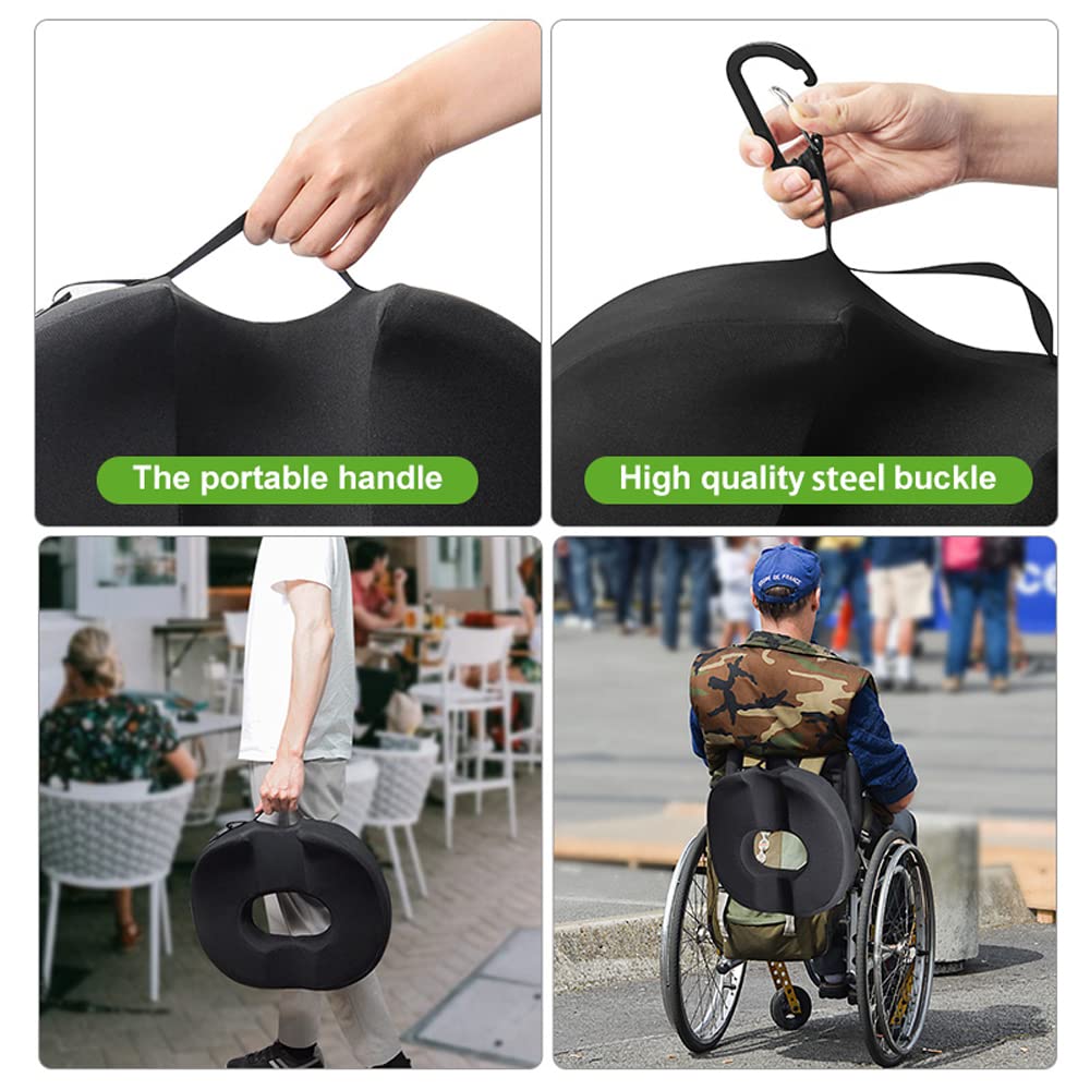 • ☑ Carry handle and hook: As the chair cushion, it can be used in the office, at home, outdoors, traveling or wheelchair, etc, the handle and hook are necessary for easily carrying along。 You can take the donut pillow by the handle, hang up the donut pillow on your backpack, suitcase or wheelchair