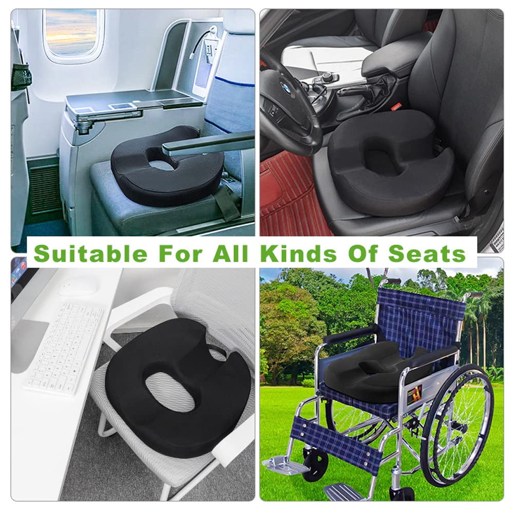 • ☑ Scientific Design: Central hole with contoured edges to effectively raise you from the seat surface. The pillow slopes gradually from back to front so that your thighs transition naturally off the seat. With “U” cutouts at the front and back of the coccyx cushion elevate your comfort.