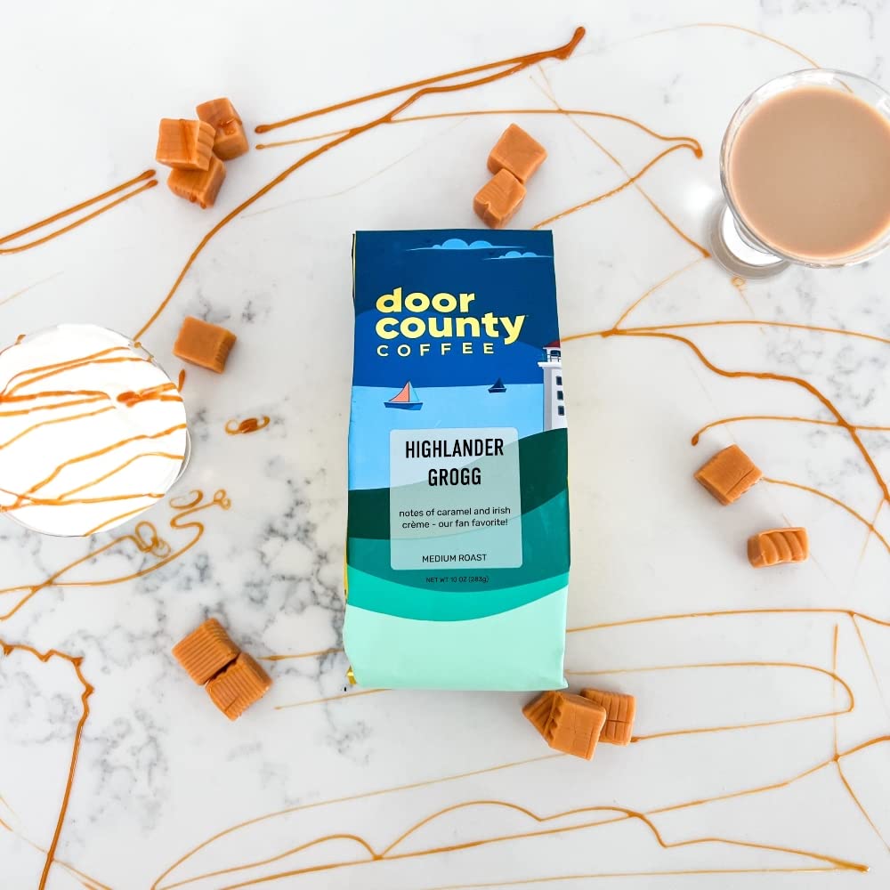 Door County Coffee Highlander Grogg DECAF Flavored Whole Bean - 10 oz Bag - Medium Roast - 100% Specialty Arabica - Flavored Gourmet - Highlander Grogg DECAF