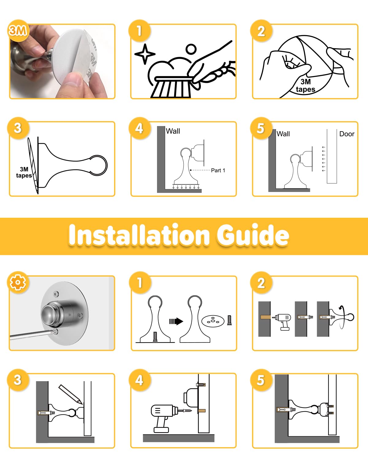 • Space-saving Wall & Floor Mounting: Unlike traditional doorstops, we deliver a compact design that unobtrusively conserves space in your home or office; Our product adapts to your needs, whether mounted on the wall, floor, door top, or near the handle; It's rustproof, weatherproof, and ready for humid or outdoor conditions