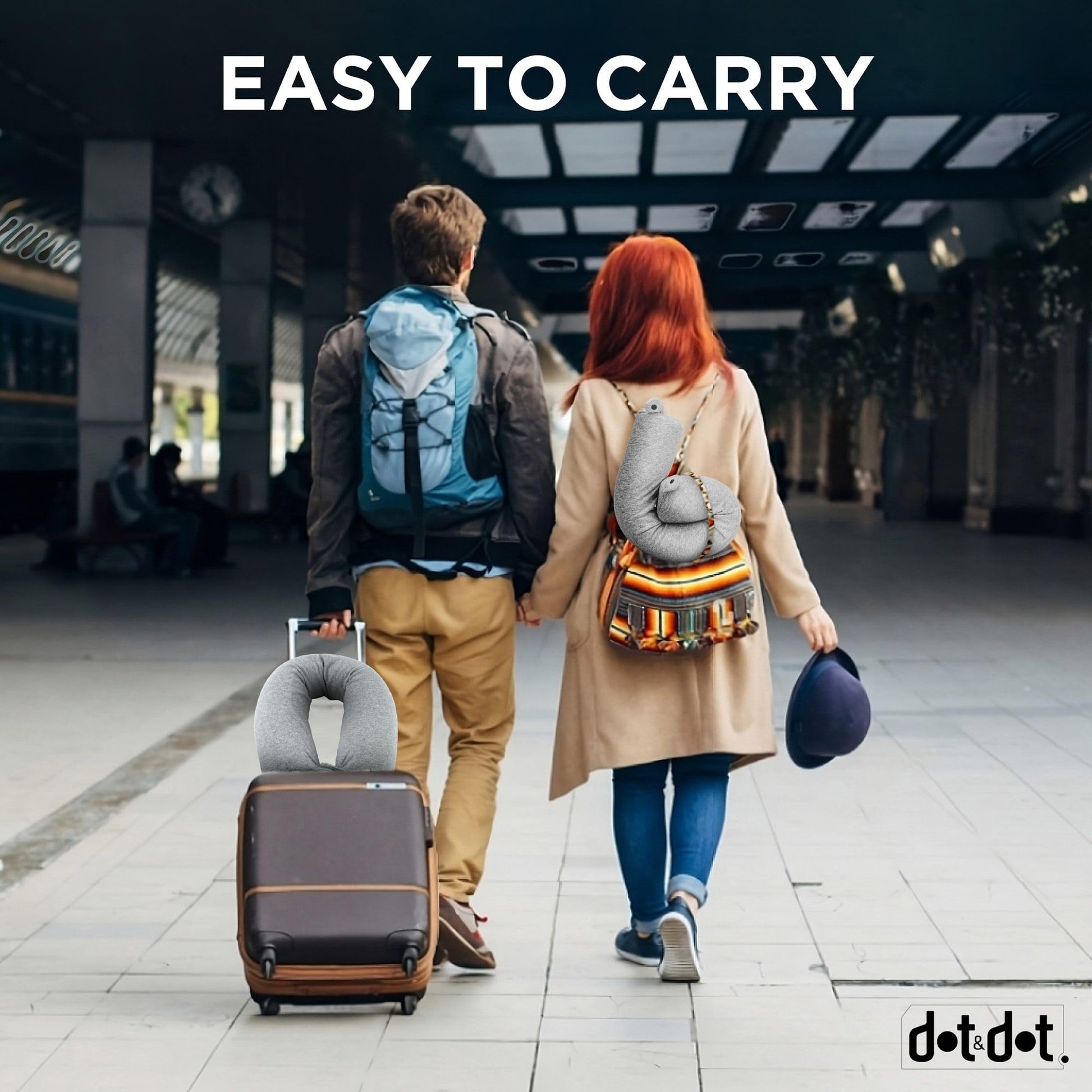 Dot&Dot Twist Memory Foam Travel Pillow for Airplanes - Travel Neck Pillow for Sleeping - Airplane Pillow for Neck Support, Chin, Lumbar and Leg - Adjustable, Bendable Neck Roll Pillow