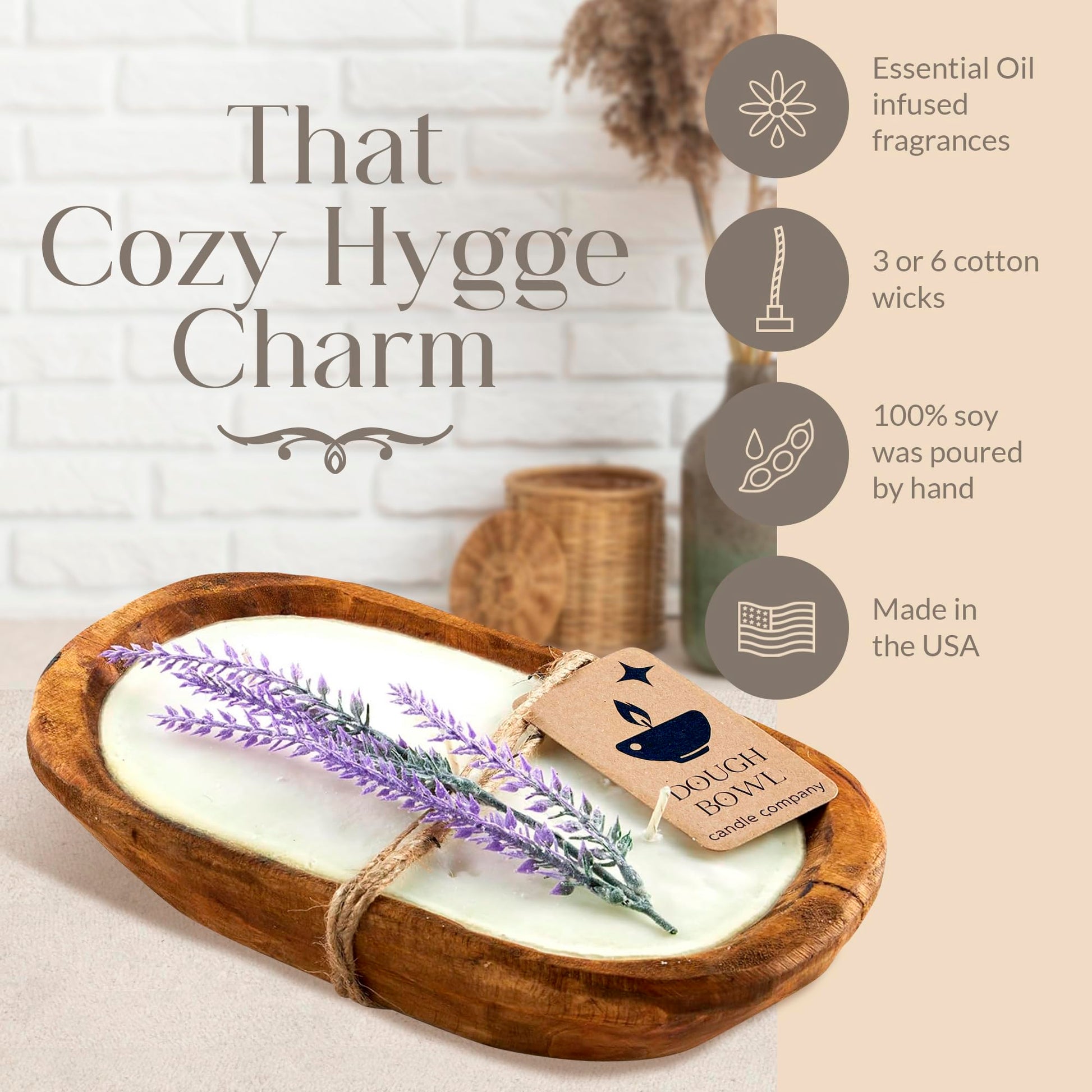 • {Add Hygge Style to a Space} This adorable wooden dough bowl candle brings rustic charm to your living room, bedroom, or office. The 3 wick candle warmer contains 20 oz. of all-natural wax. The result yields pumpkin spice-scented aromatherapy candles for relaxation that add gentle fragrance to your chosen space. The hand-poured odor neutralizer, enclosed in a Spanish Oak bowl, is 100% American made.