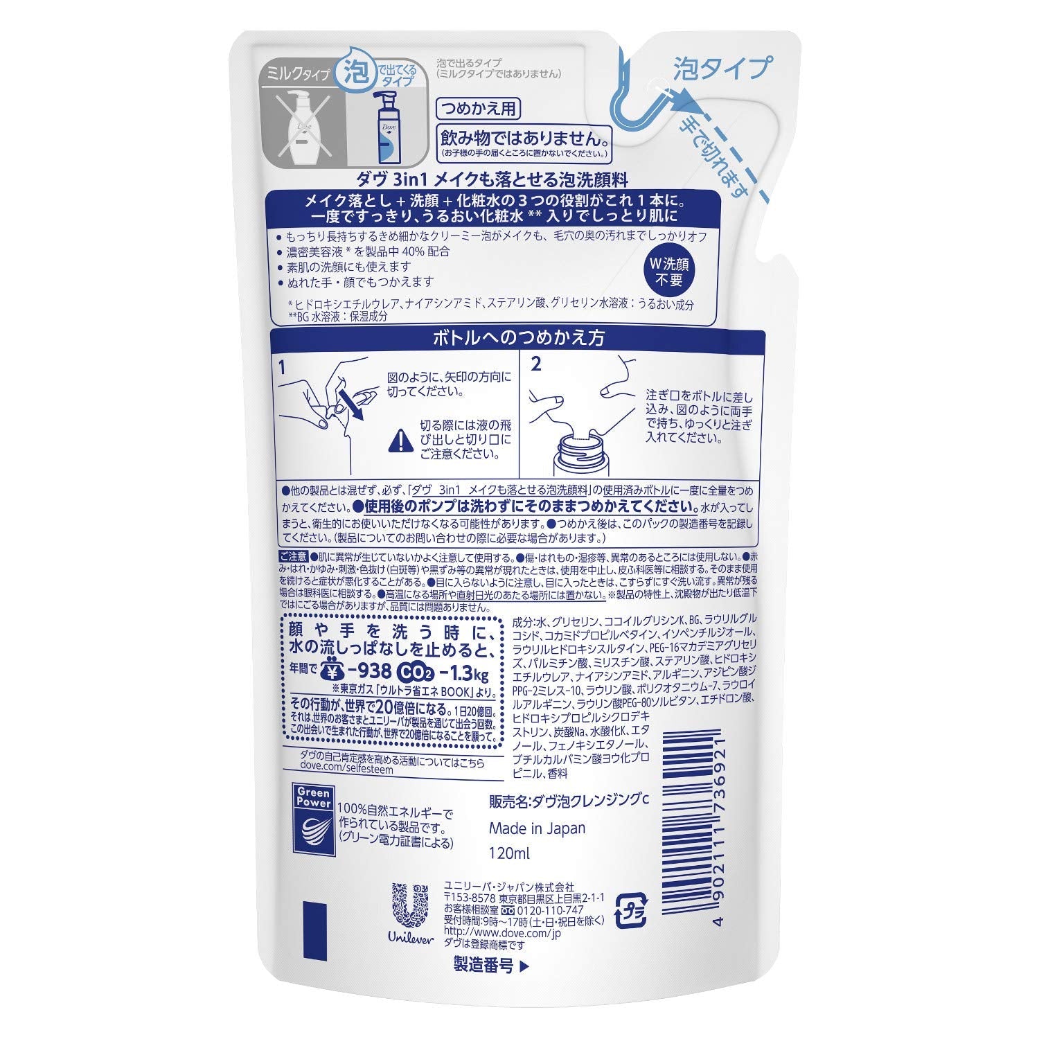 Dove 3-in-1 Makeup Remover Foam Facial Cleanser Refill 4.2 fl oz (120 ml) x 3 Packs with Bonus