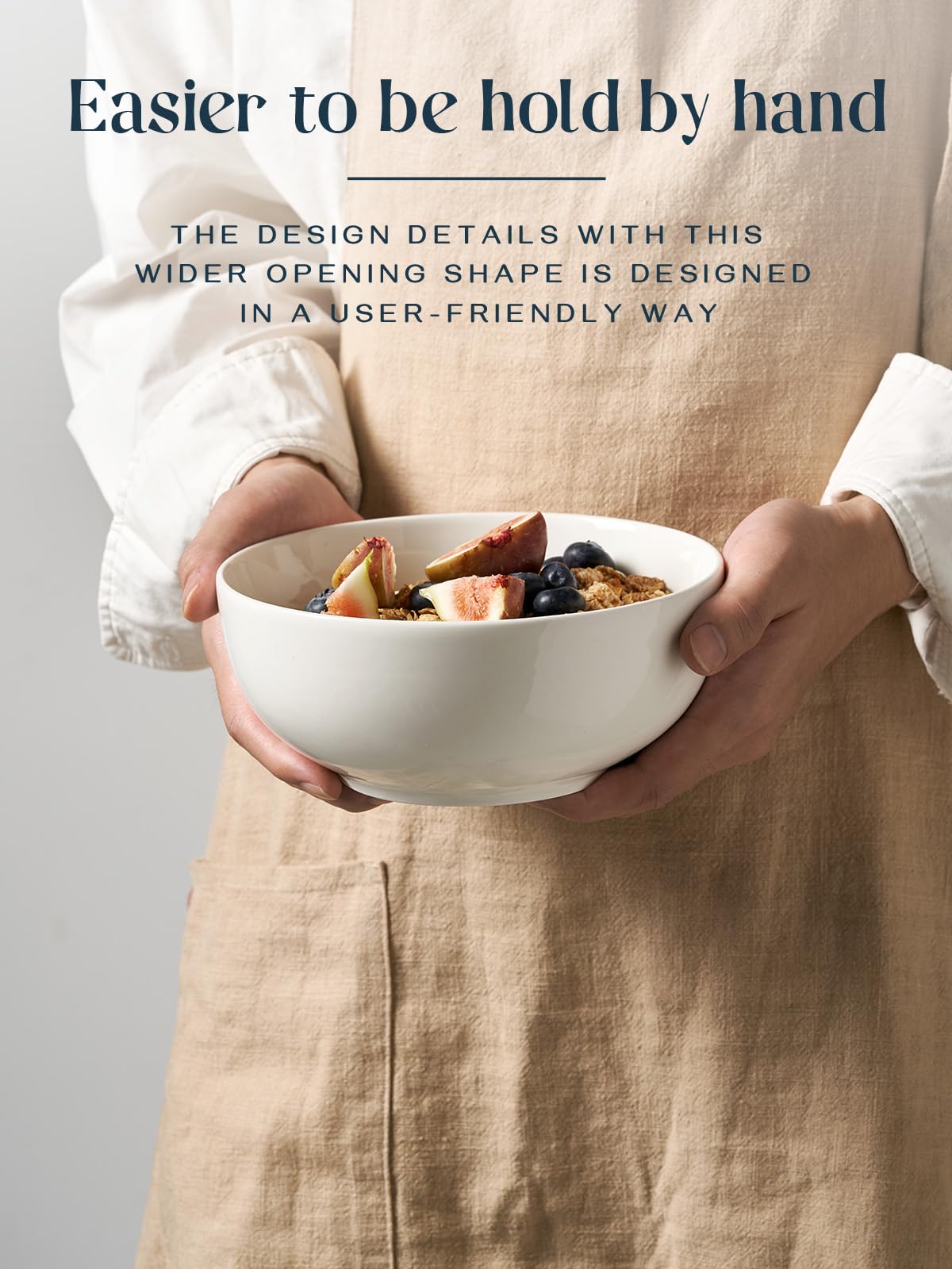 DOWAN 39 OZ Large Deep Bowls Set of 4 - White Ceramic Bowls for Ramen, Pasta, Salad, Mixed Fruit - Dishwasher & Microwave Safe (Soft White)
