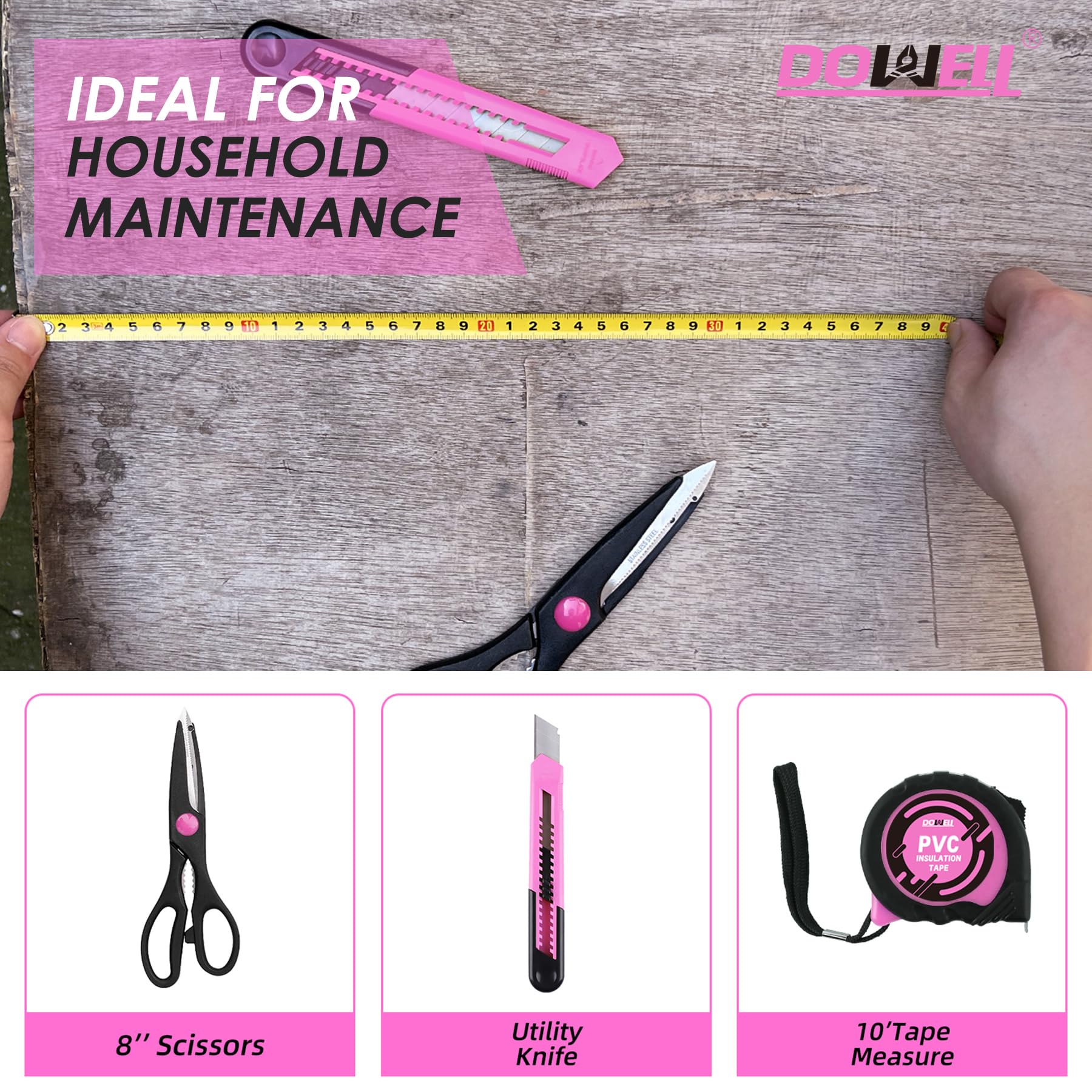 DOWELL 40 Piece Home Tool Set Pink, General Household Hand Tool Kit with Plastic Toolbox Storage Case, Mini Repair Tool kit for Women, College Students, Home Use & More