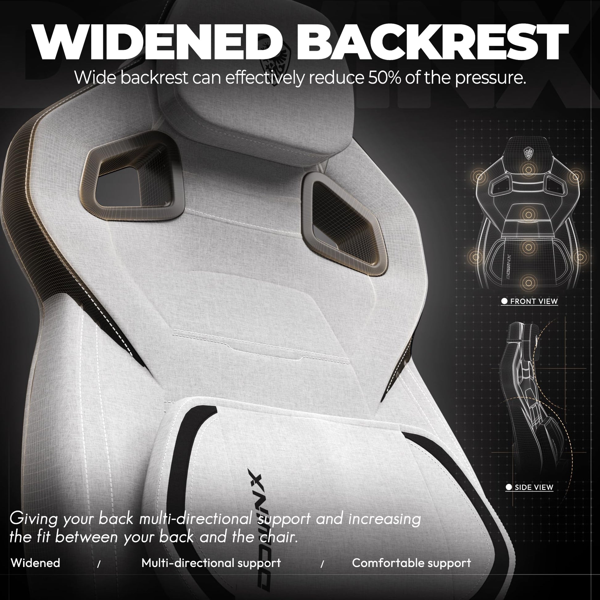 • Ergonomic Wide Backrest for Full Support: The Dowinx gaming chair features a wide backrest that provides exceptional support for your back and spine, making it ideal for heavier people. It effectively relieves pressure, ensuring long-lasting comfort and support during extended gaming or working sessions.
