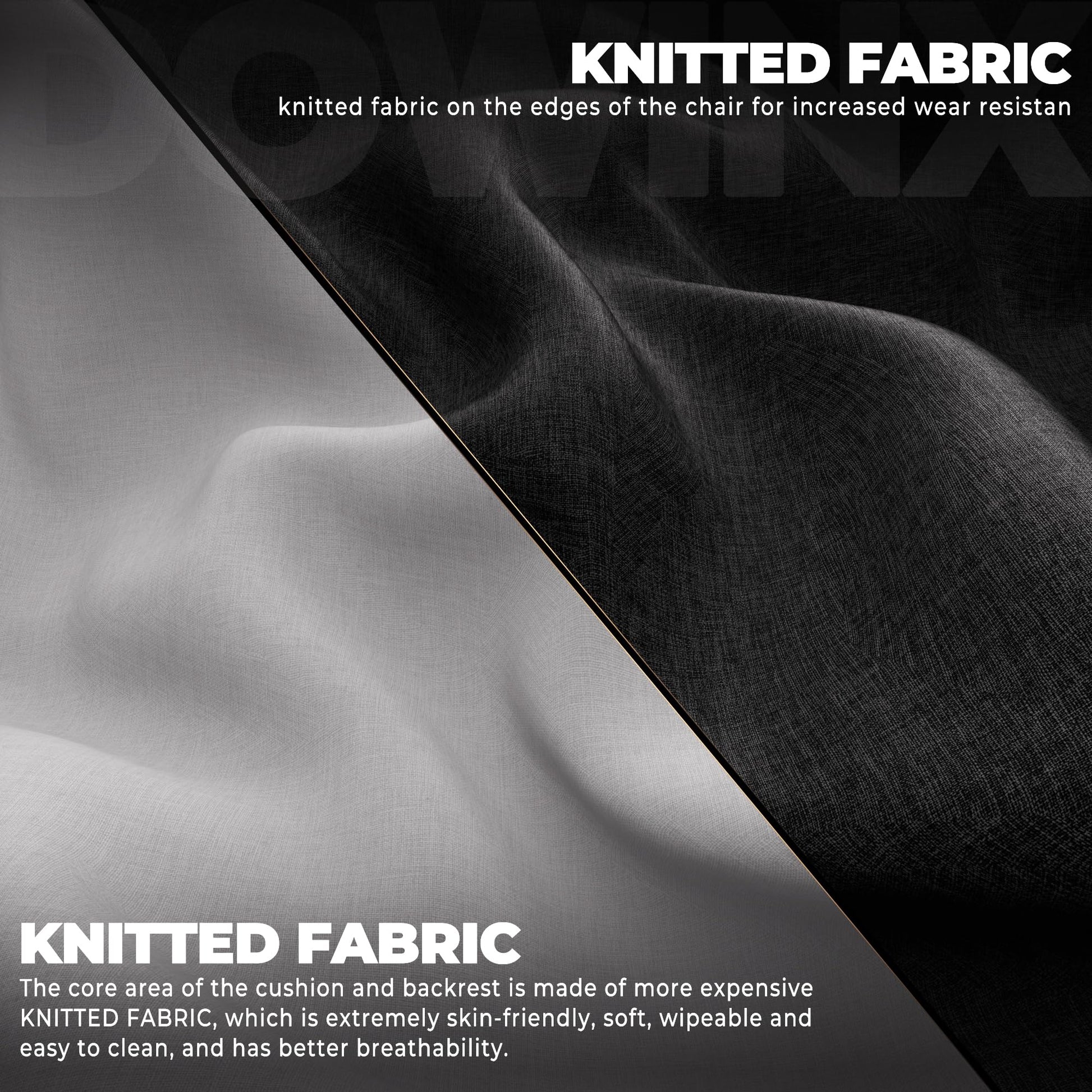 • Premium Materials for a Luxurious Feel: Crafted from knitted fabric, the gamer chair offers a luxurious touch and premium feel. The durable yet breathable materials ensure long-lasting use while maintaining comfort. The included headrest and massage lumbar pillow provide additional comfort.