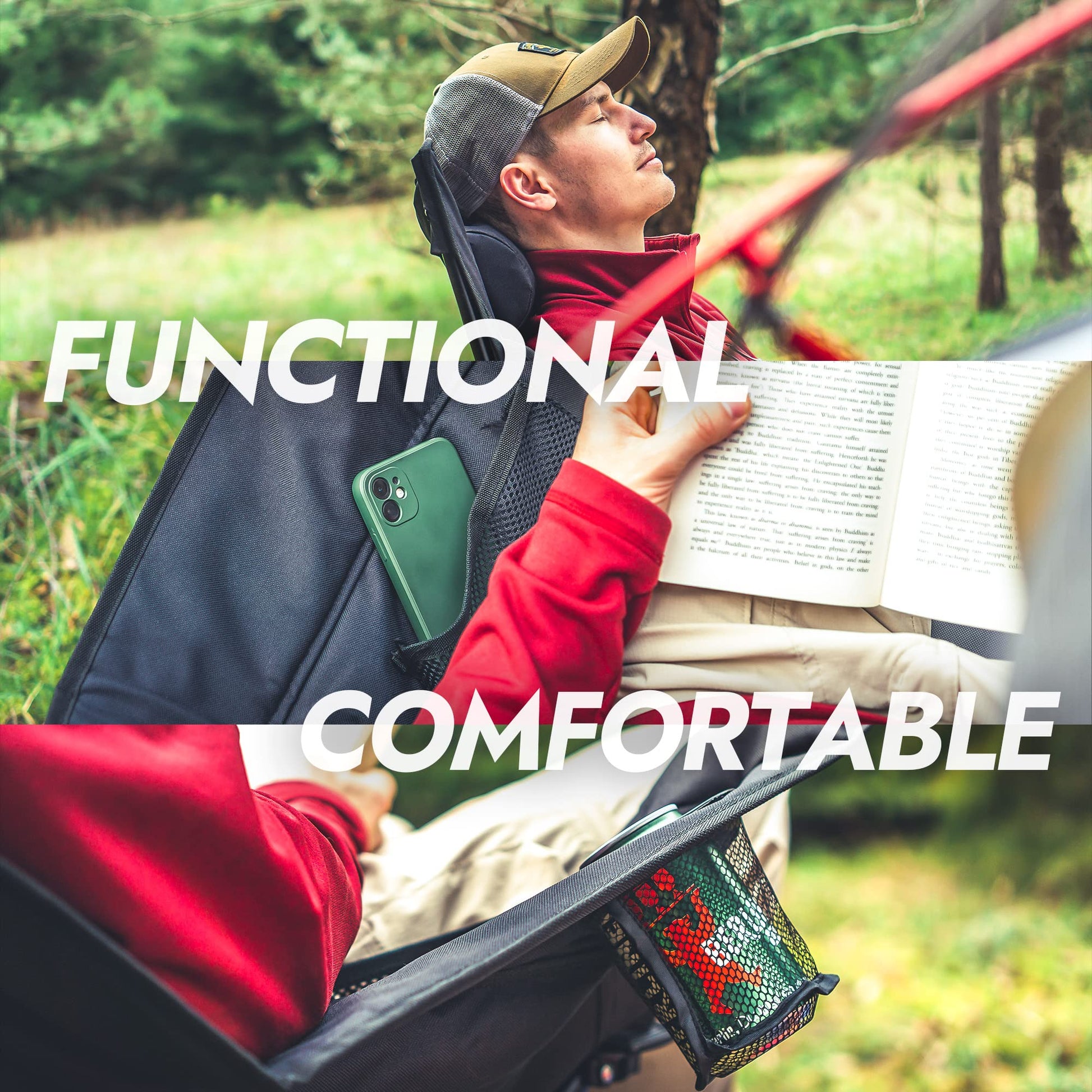 • Convenient Design: Soft armrest make in and out easy. The portable rocking chair with cup holder is also designed with unique back mesh bag and beverage cup holder that make this lawn rocking folding chair more convenient to use.