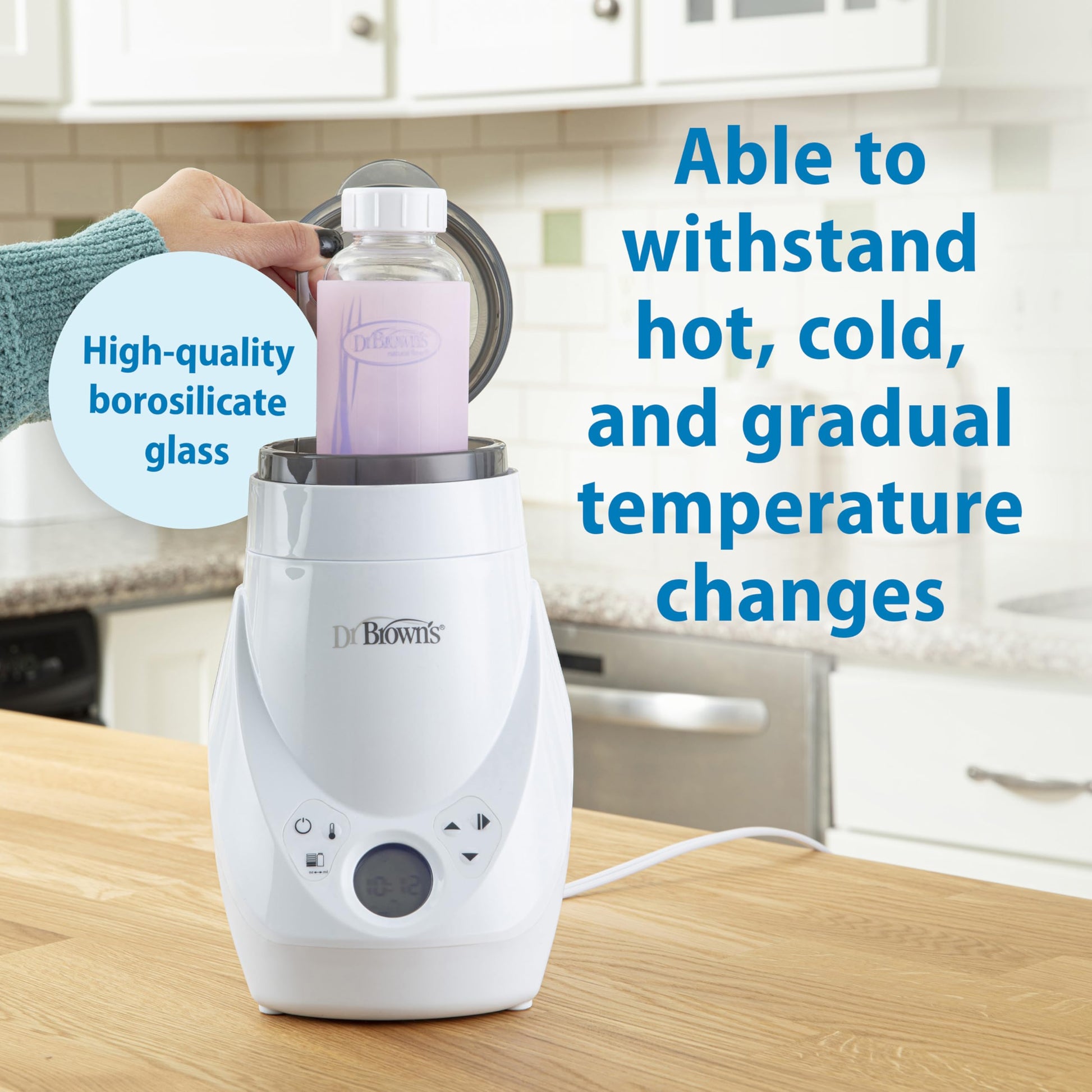 • DURABLE BOROSILICATE GLASS. Dr. Brown's Glass bottles are heat and thermal shock-resistant, which can withstand hot and cold temperatures, along with gradual temperature changes