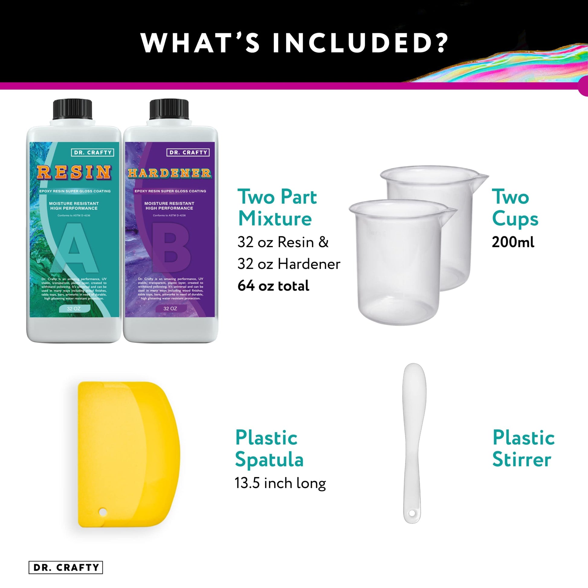 DR CRAFTY Clear Epoxy Resin Kit - For Table Top, Molds, Art, Craft, Jewelry Casting, DIY, Tumblers & Wood - 2 Part Kit, 64 Ounces