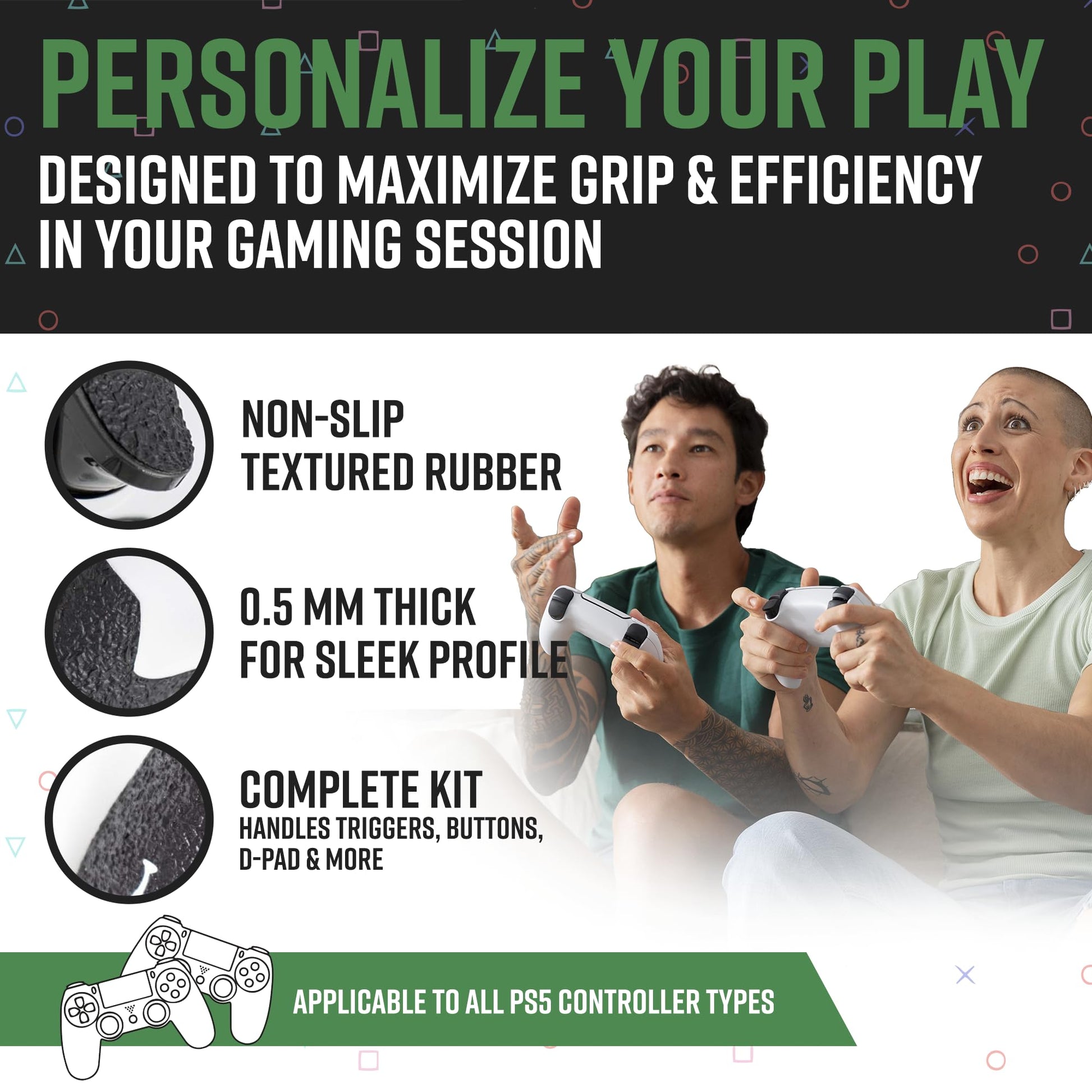 • TEXTURED ANTI-SLIP RUBBER CONTROLLER GRIP. Our PS5 controller grip cover offers a better gripping power of the handle, preventing sweaty hands from affecting your game and keeping your gaming peripherals protected from unwanted slips and dropping.