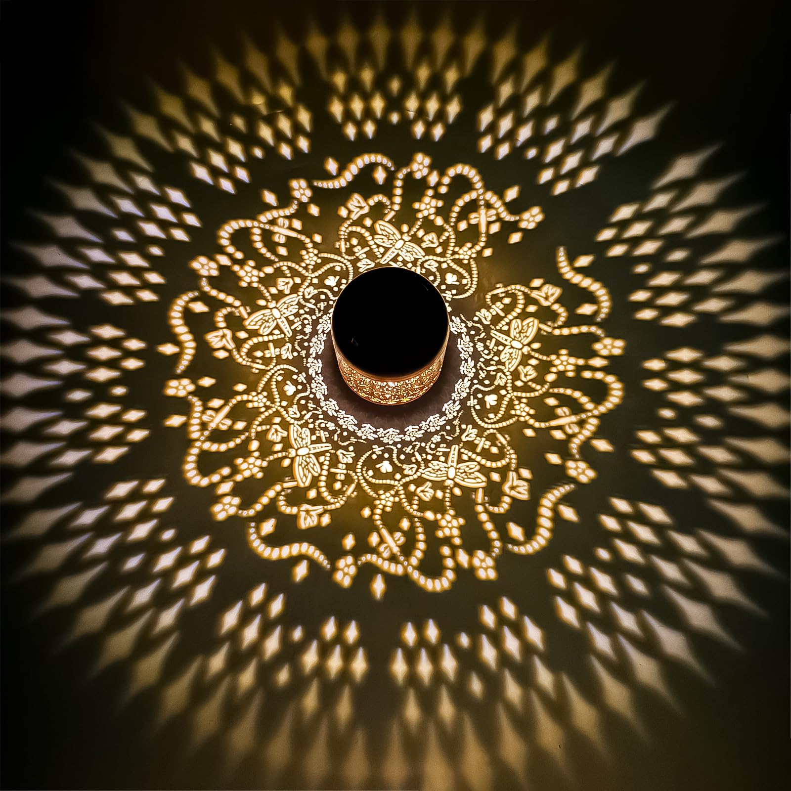 • 【Dragonfly Garden Decoration】The solar outdoor lantern is inspired by animal elements in nature. It projects bright dragonfly patterns in the dark, creating a gorgeous and warm atmosphere and bringing vitality and fun to your garden. It adopts a gold-copper color and hollowed-out metal finish, presenting a retro look.