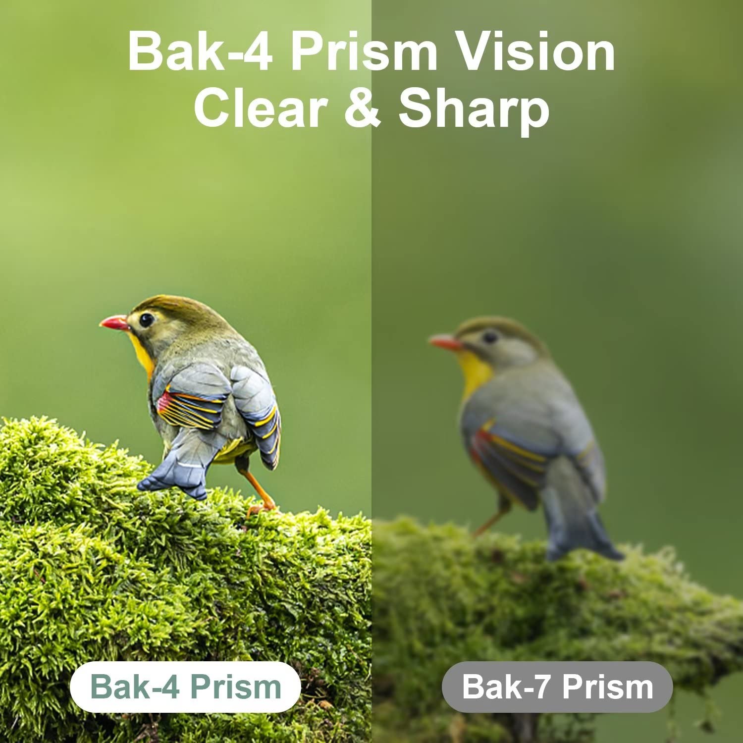 • 【Clear and sharp views】The BAK-4 roof prism guarantee for the brighter view and sharp images. And the lens coatings consist of fully multi- layers makes high light transmittance over 99.99% to yield an image with maximum brightness and natural colors. Also can deliver clear vision in low light night vision, but NOT for completely dark night.