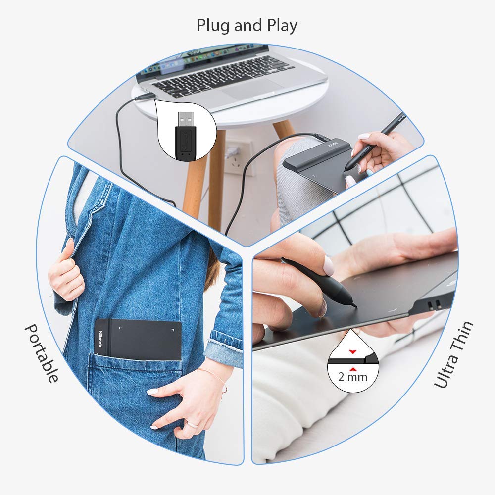 • Compact and Portable: The G640 art tablet is only 2 mm thick, it's as slim as all primary level graphic tablets, allowing you to carry it with you on the go