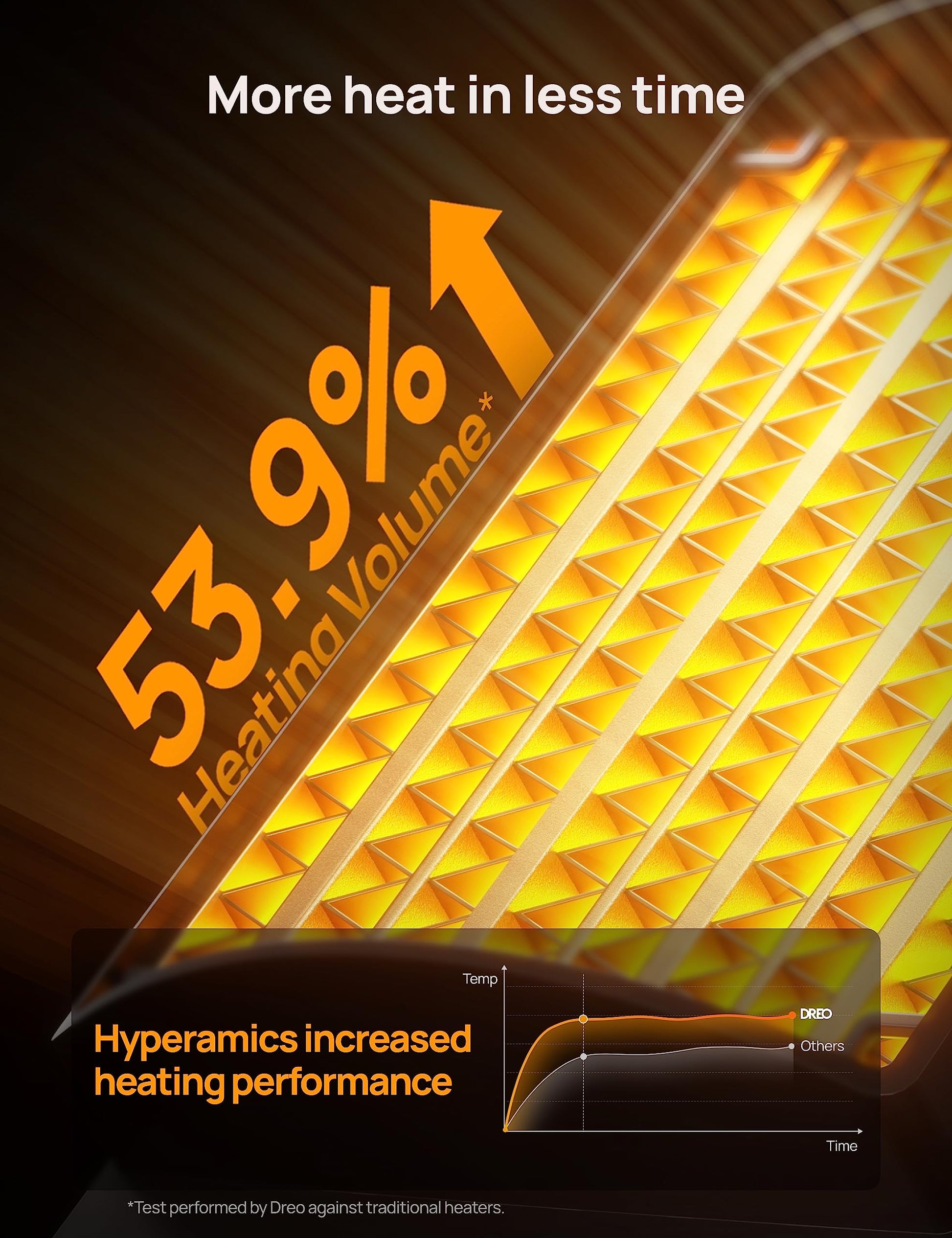 • Powerful heat that fits everywhere: Dreo space heaters for indoor combines Hyperamics 1500W advanced PTC system with a new heat funnel design to deliver heat within seconds and enhance warm air circulation for up to 200% farther reach than traditional heaters.