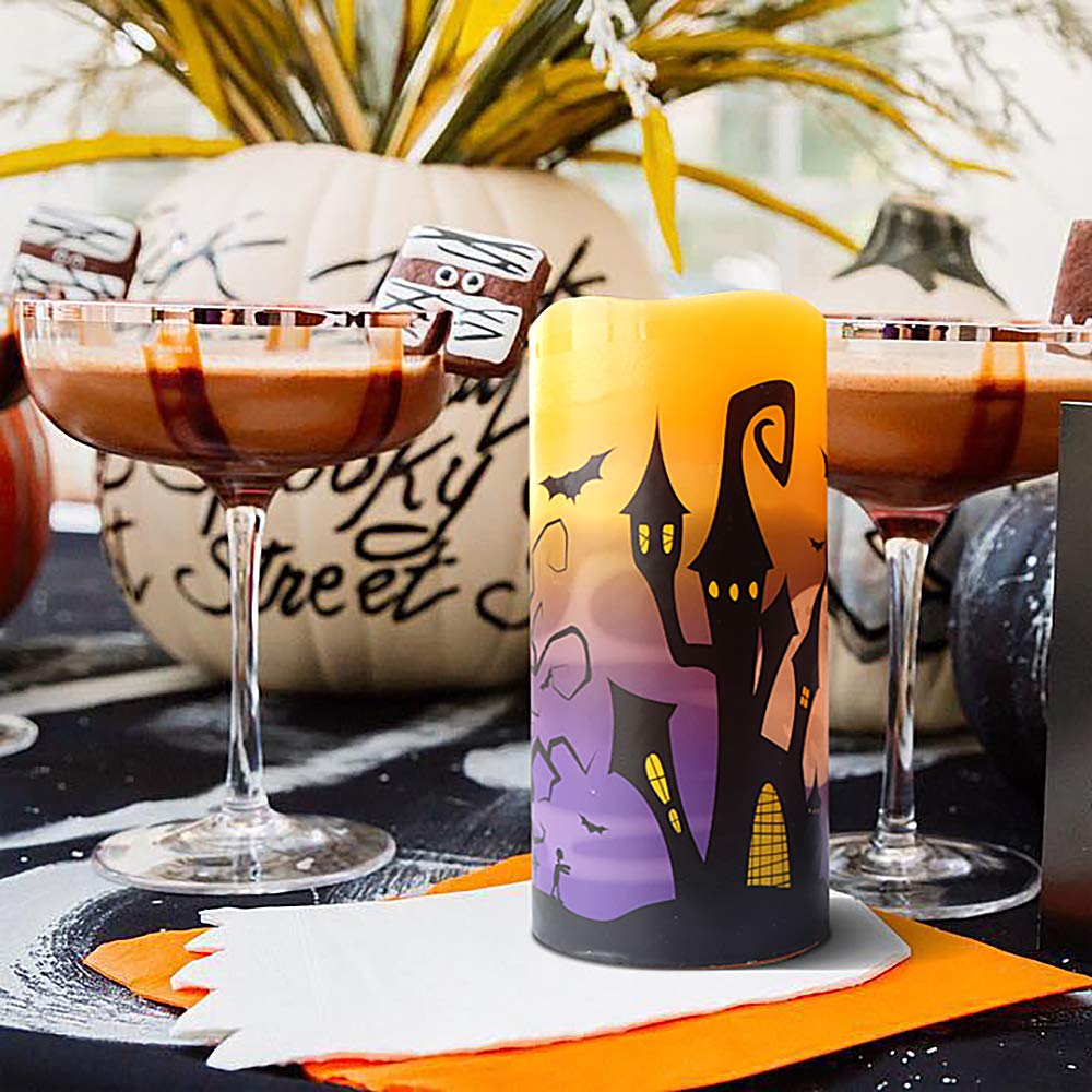 • [Halloween Decor Indoor]: 🎃Our Halloween flameless candles made by real wax with LED flickering, Castle, Witch and Bats decal adds festival atmosphere in your room, great gifts for friends and kids