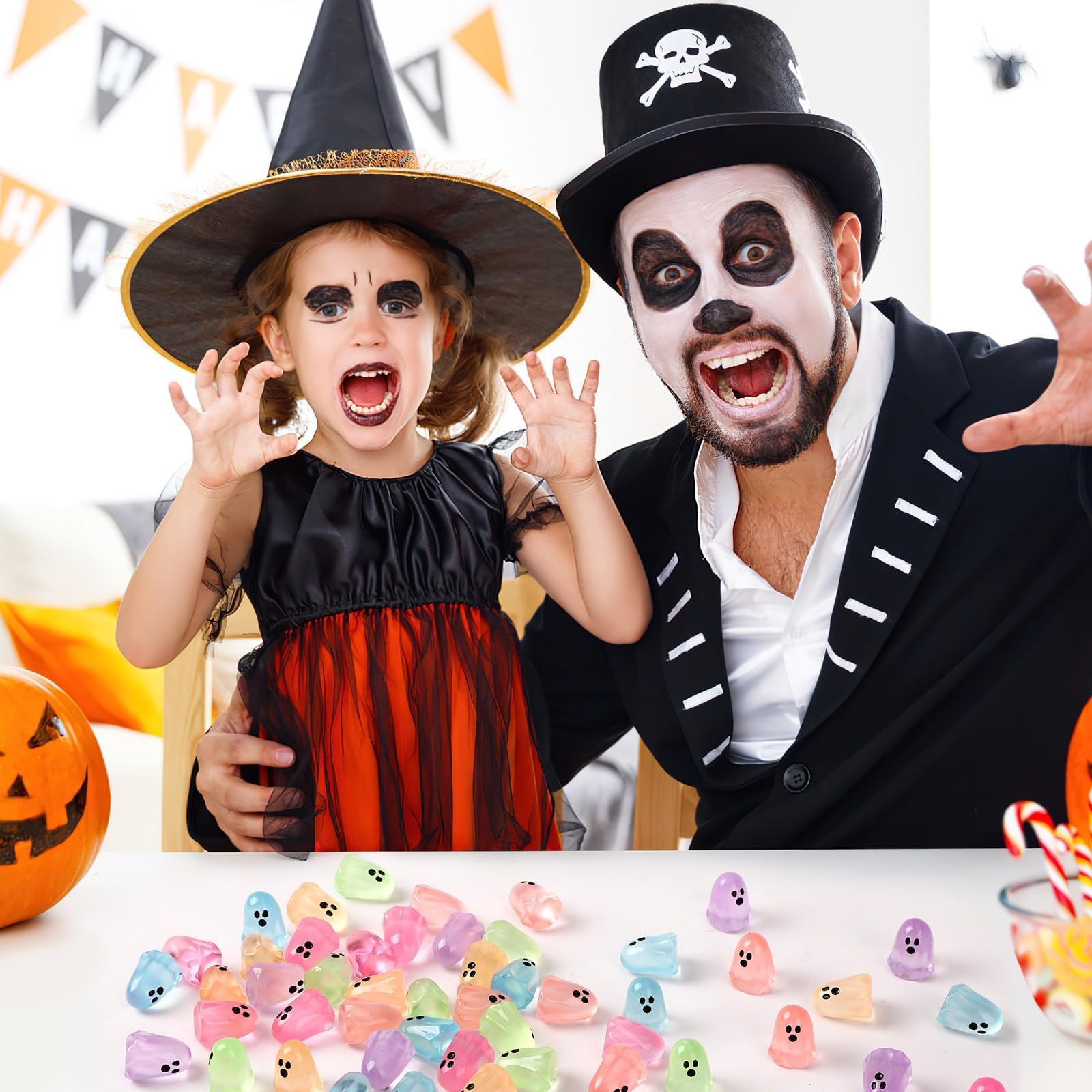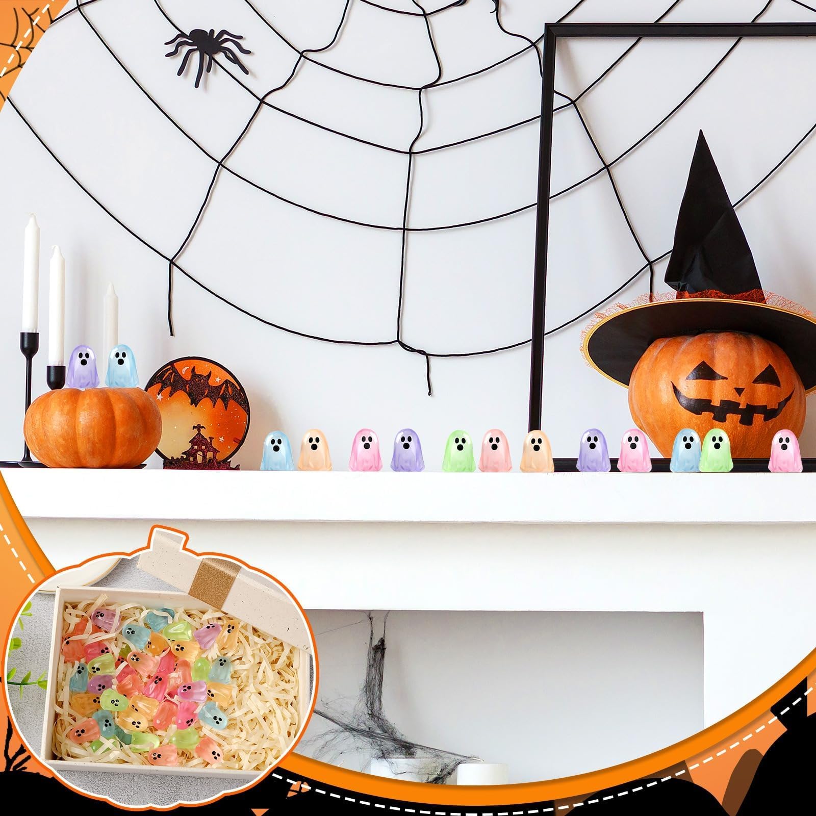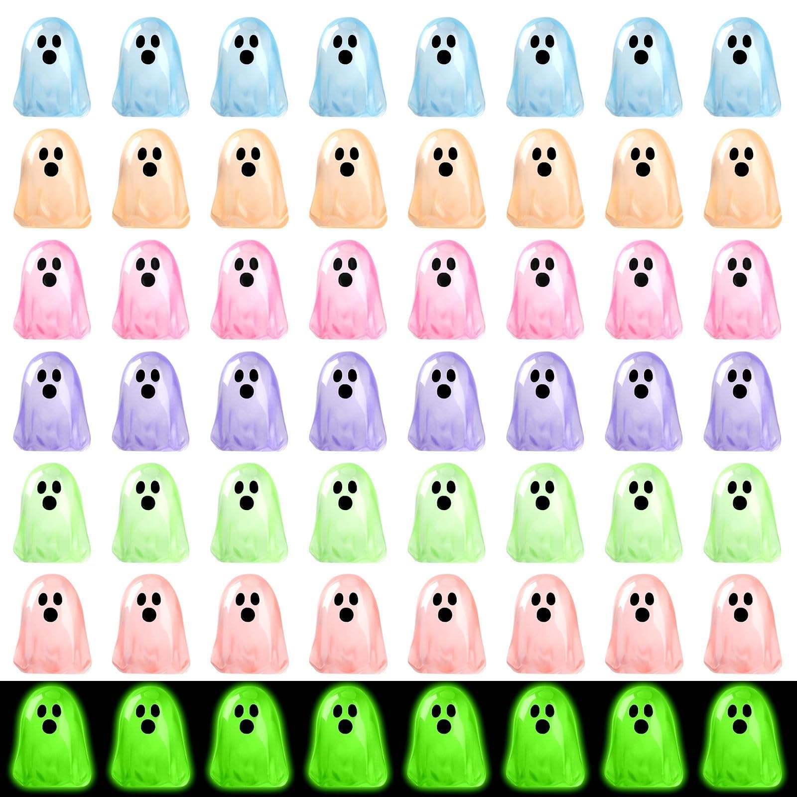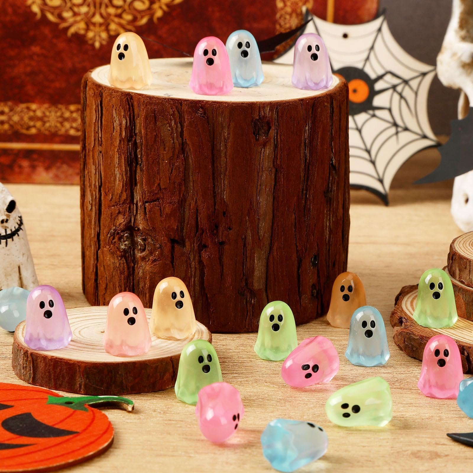 DTOFOOT 56 Pcs Luminous Mini Ghosts,Halloween Tiny Resin Ghosts Figures Glow in The Dark mini Ghosts Miniature Statue for Plant Pot Landscape Lawn Landscape Home Party Decor