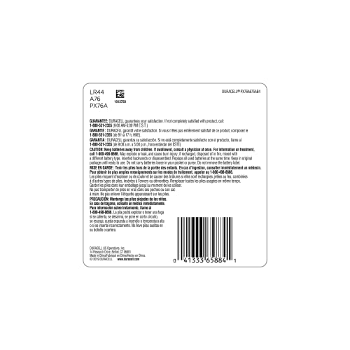GUARANTEED FOR 5 YEARS IN STORAGE: Duracell guarantees each 76A 1.5 Volt alkaline battery to last 5 years in storage, so you can be confident these batteries will be ready when you need them
