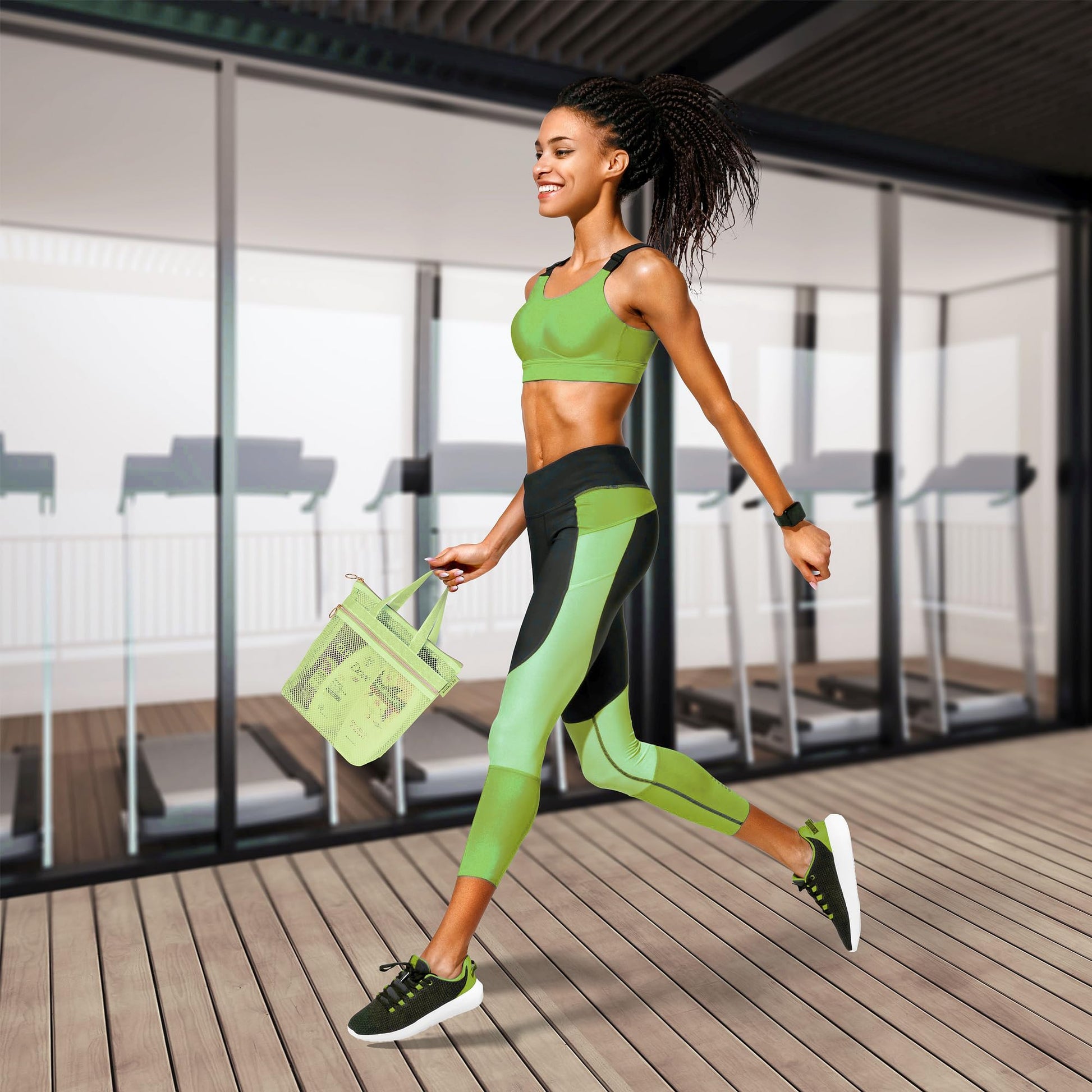 DV Lifestyle Mesh Shower Bag 10.2x9.9'' Quick-Dry Caddy with Zipper & 2 Pockets. Portable Toiletry Tote for Bathroom, Gym, Travel, Camp, Beach, for Sunscreen, Dorm & College Essentials (Light Green)