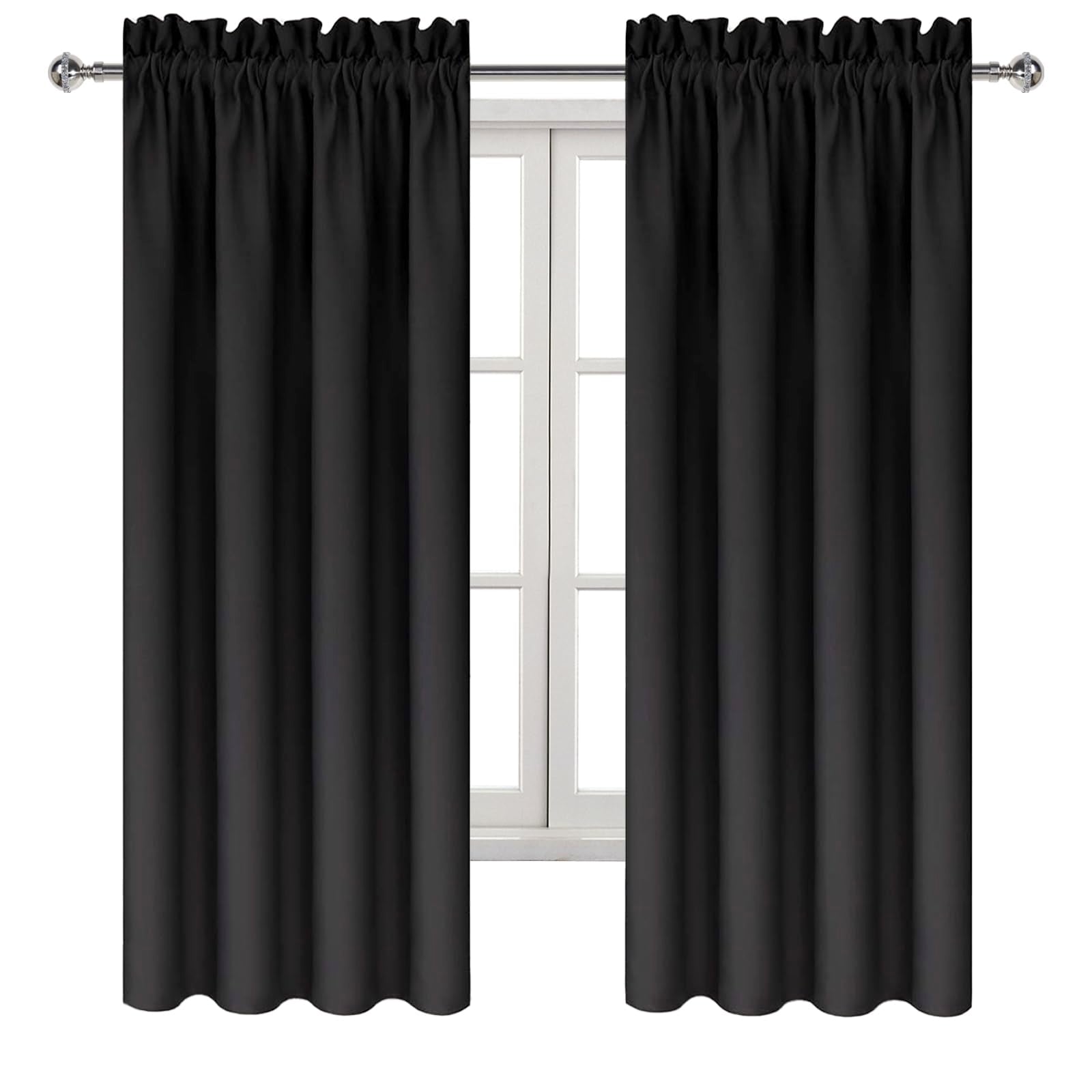 DWCN Blackout Curtains – Thermal Insulated, Energy Saving & Noise Reducing Bedroom and Living Room Curtains, Black, W 42x L 63 Inch, Set of 2 Rod Pocket Curtain Panels