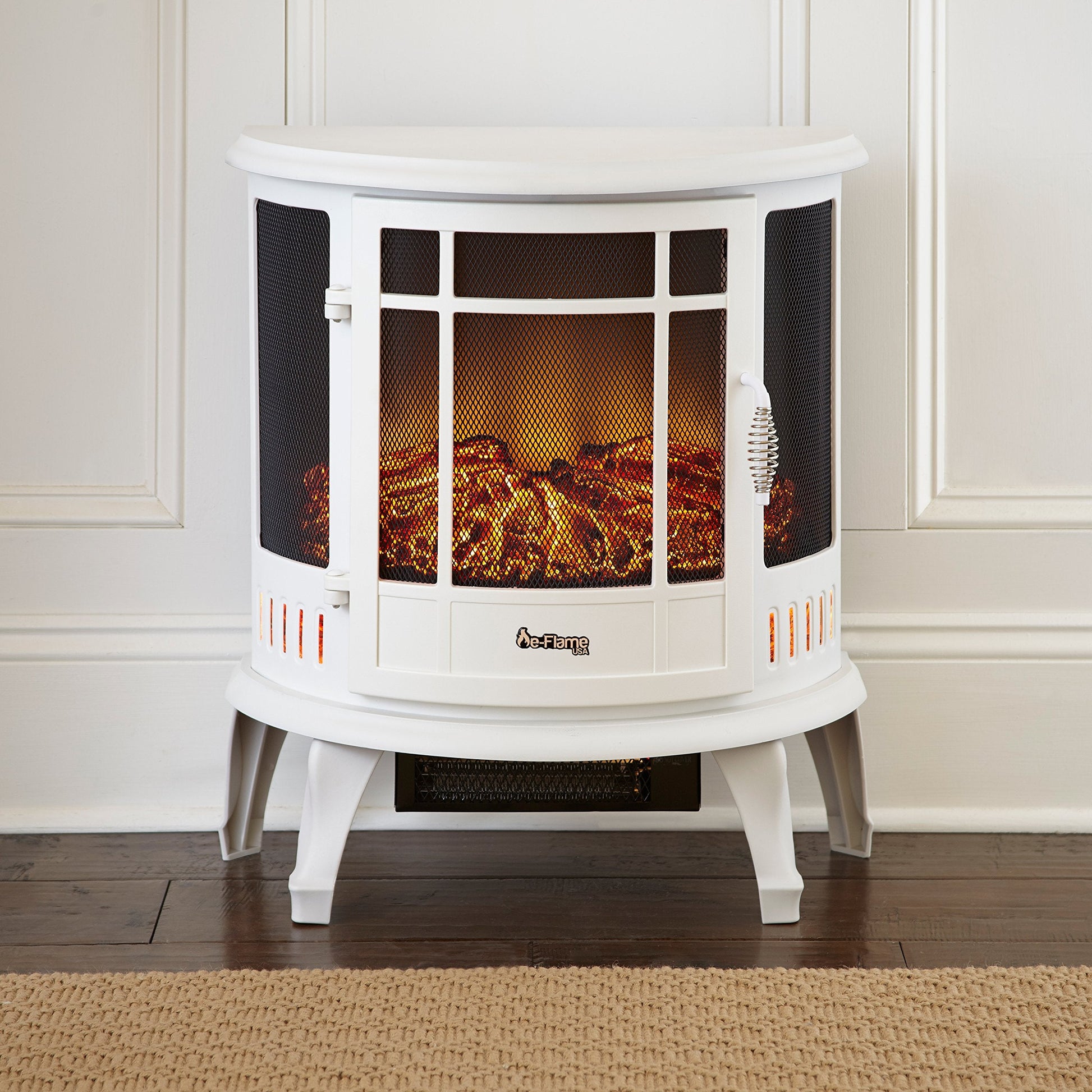 e-Flame USA Regal Freestanding Electric Fireplace Stove - 3-D Log and Fire Effect (White)