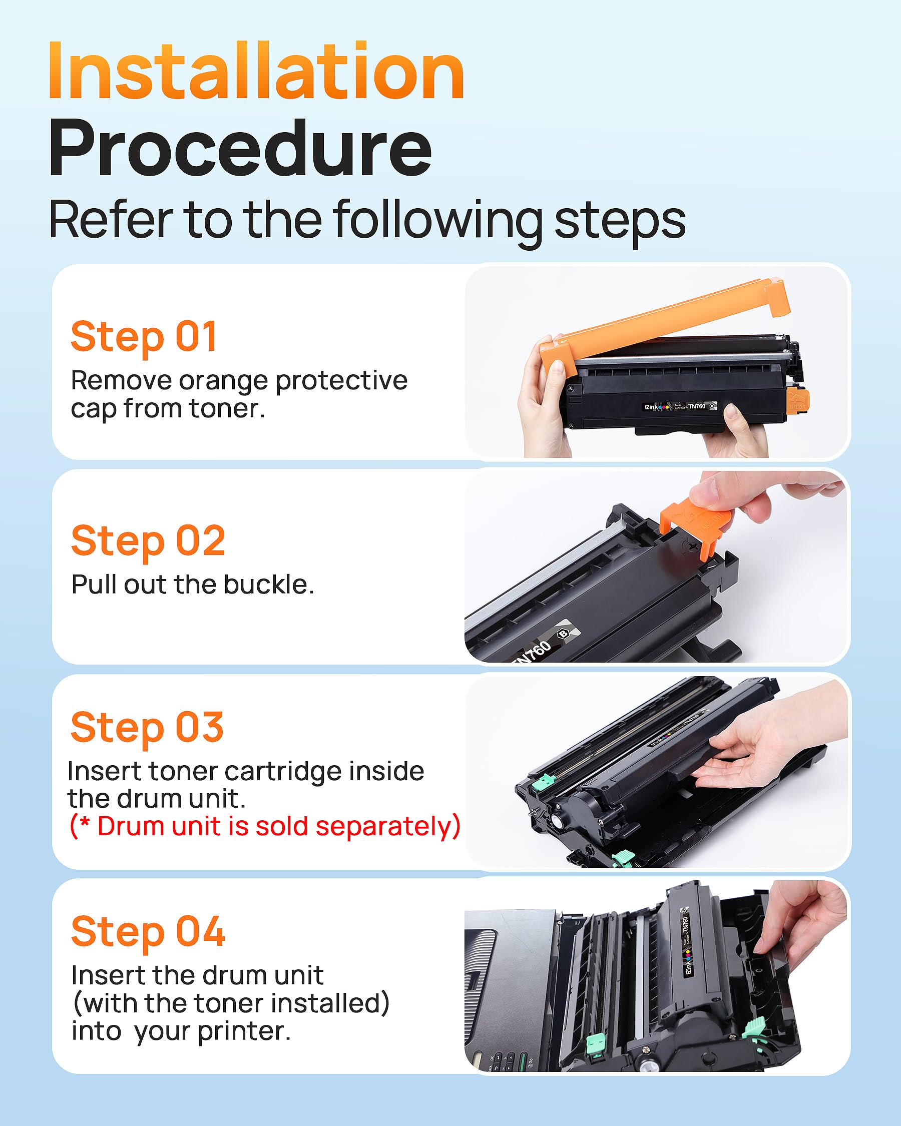 • Package contents: 1 x User Guide, 4 x TN760 Black toner cartridges ues with tn760 toner for brother printer