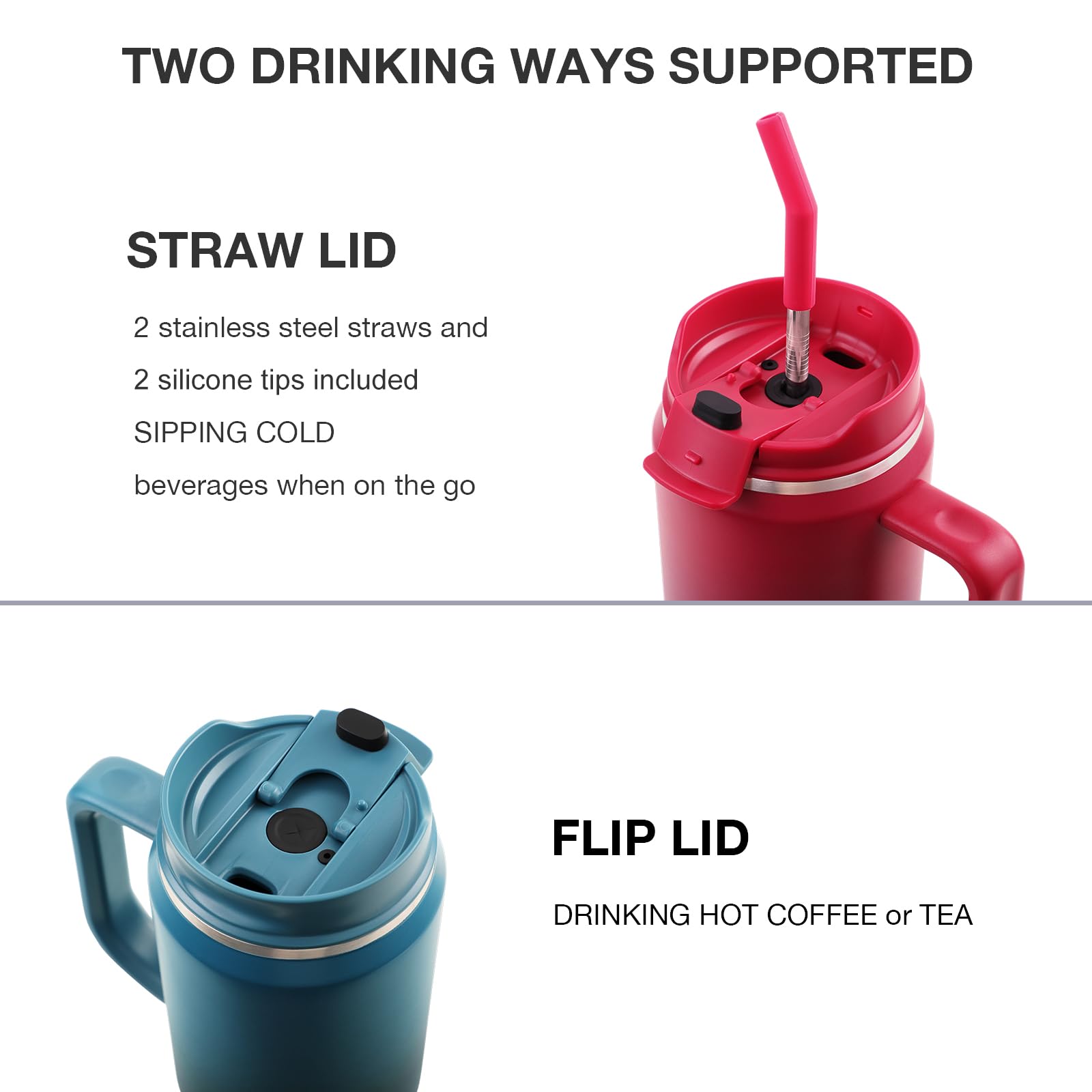 • A LID FOR EVERY NEED: This 40 oz insulated water bottle jug comes with a 2-in-1 lid, Straw lid makes it easy to enjoy spill-proof sips, if swigging is more your thing, remove the straw and sip through the flip-top lid. Come with 2 straws and a straw brush