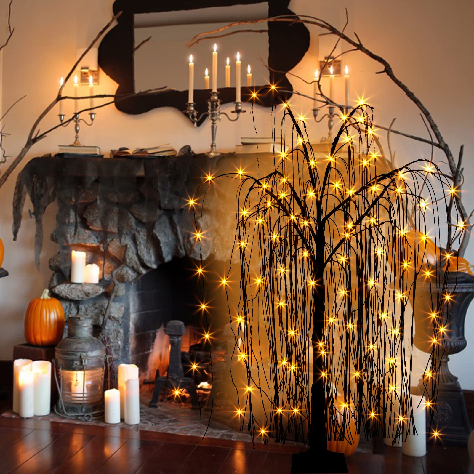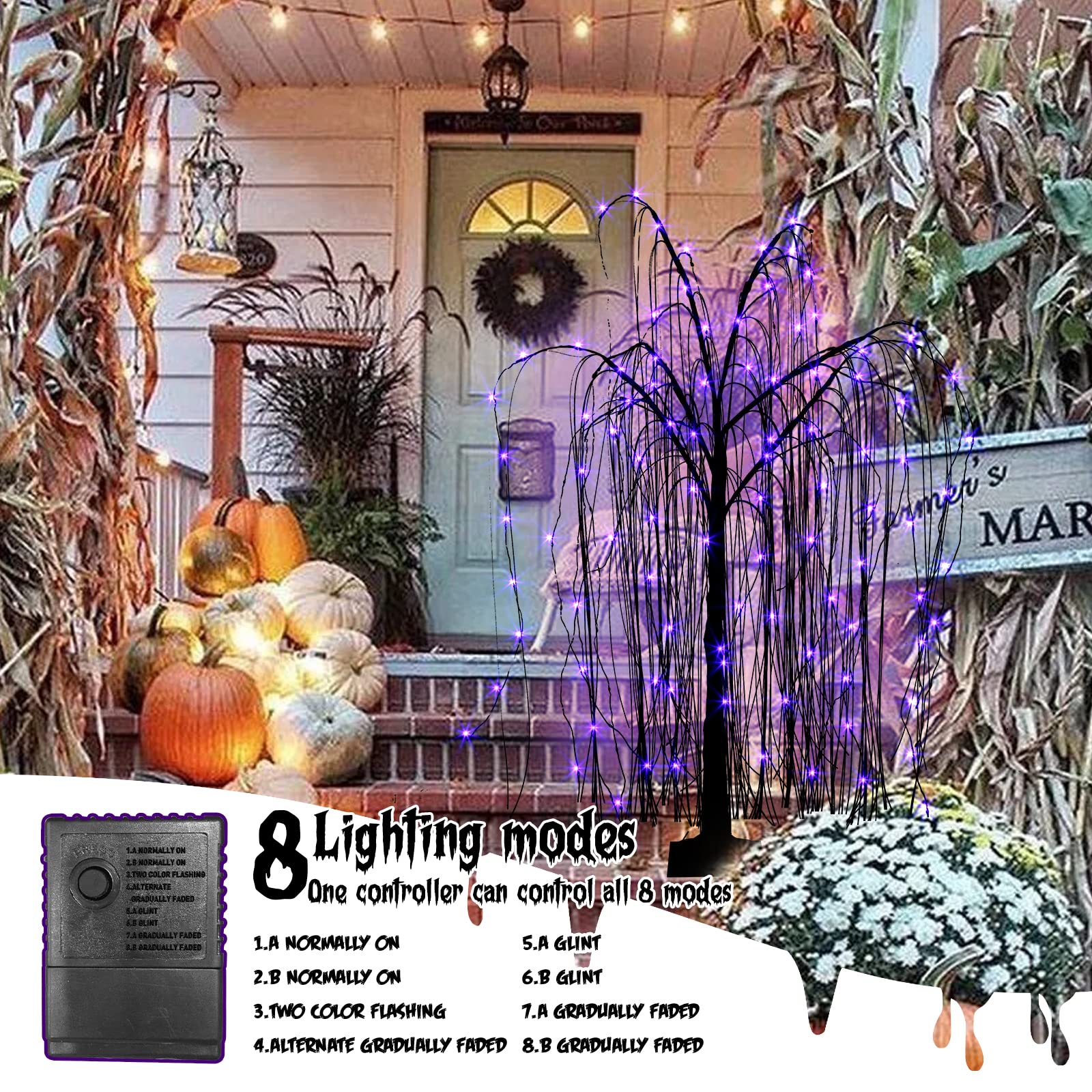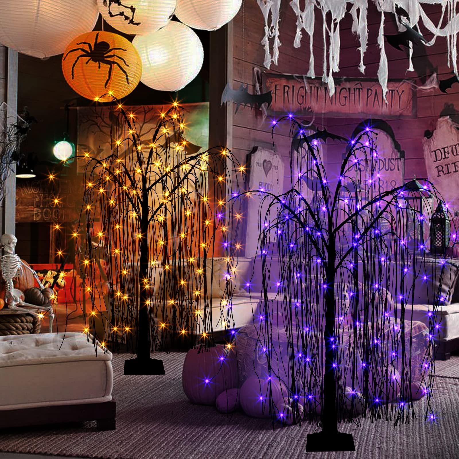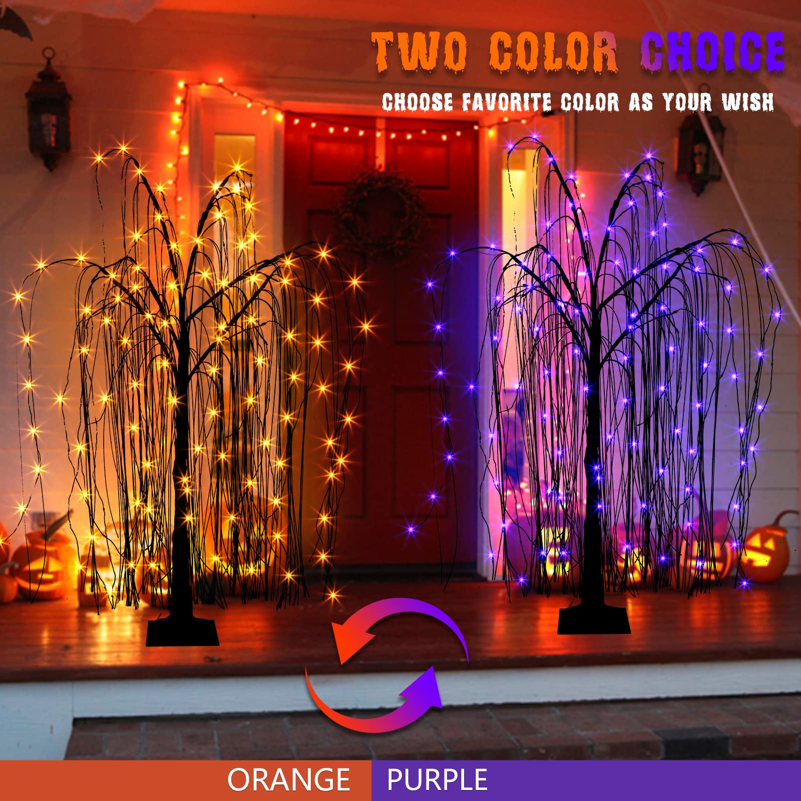 • LIGHTING UPGRADE: Replace traditional LED lights with totally 180 fairy lights, among them 90 orange and 90 purple, together with black weeping wicker, create a perfect spooky Halloween scene! It’s a stay-lit tree