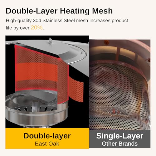 • ๐— ๐—ผ๐—ฟ๐—ฒ ๐——๐˜‚๐—ฟ๐—ฎ๐—ฏ๐—น๐—ฒ ๐——๐—ผ๐˜‚๐—ฏ๐—น๐—ฒ-๐—Ÿ๐—ฎ๐˜†๐—ฒ๐—ฟ ๐—›๐—ฒ๐—ฎ๐˜๐—ถ๐—ป๐—ด ๐— ๐—ฒ๐˜€๐—ต: High-quality 304 stainless steel is engineered into our double-cover heating mesh design. Compared with a traditional single-layer burning mesh heater, the EAST OAK Outdoor Heater is more powerful, durable, and safer. All these improvements deliver a 20% longer product life