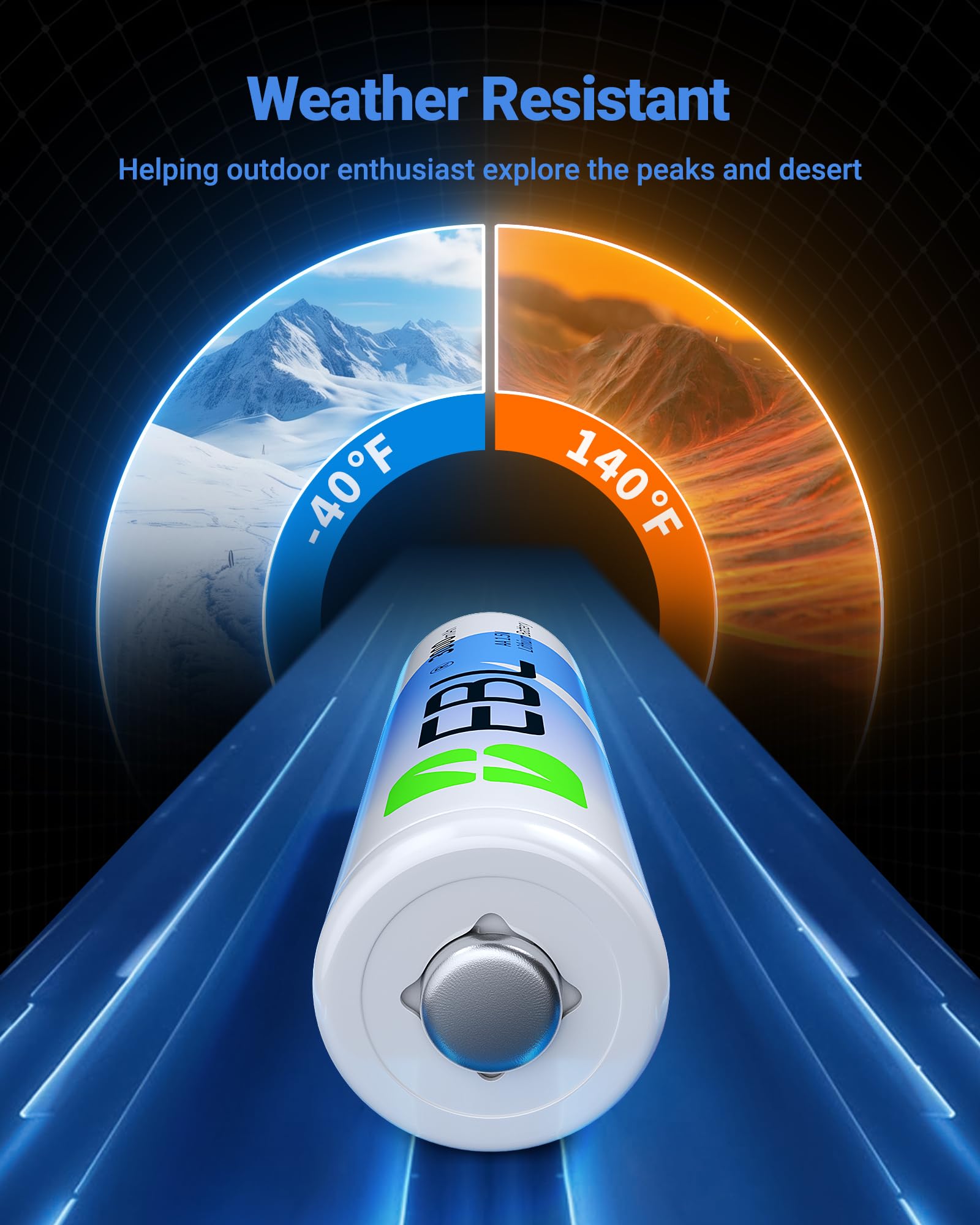 • 【High Efficiency and Constant Output】The 1.5v aa lithium battery keep constant volt discharge rate and have 100% of its capacity available.